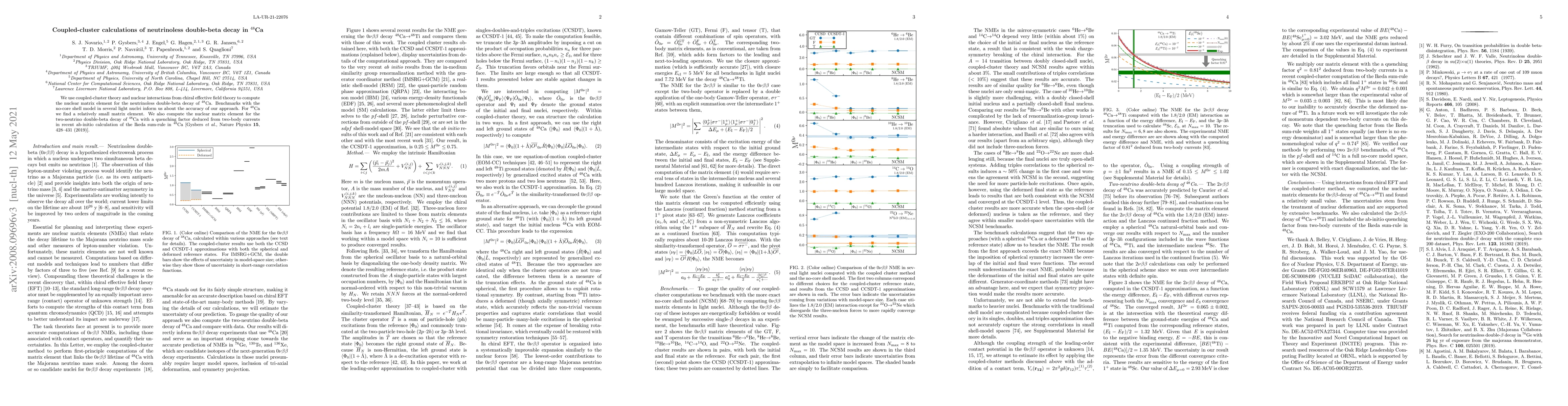 This paper employs coupled-cluster theory and chiral effective field theory to calculate the nuclear matrix element for neutrinoless double-beta decay in $^{48}$Ca, finding a small matrix element. It also computes the two-neutrino decay matrix element with a quenching factor derived from recent ab-initio calculations.