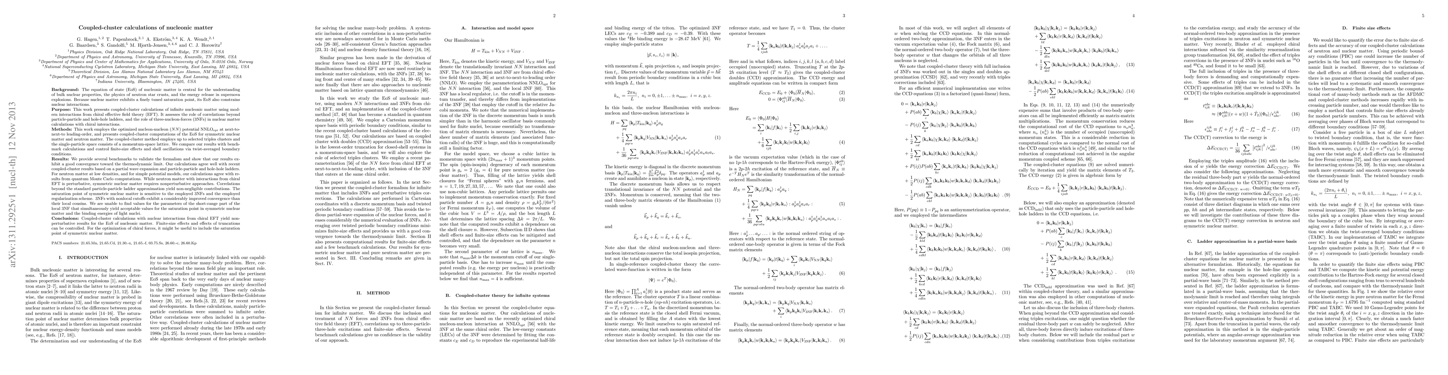 This paper presents coupled-cluster calculations for nucleonic matter using chiral EFT interactions, showing that nonperturbative methods are needed for symmetric nuclear matter. The study highlights the significant role of three-nucleon forces and correlations beyond standard approximations, with nonlocal cutoffs improving convergence.