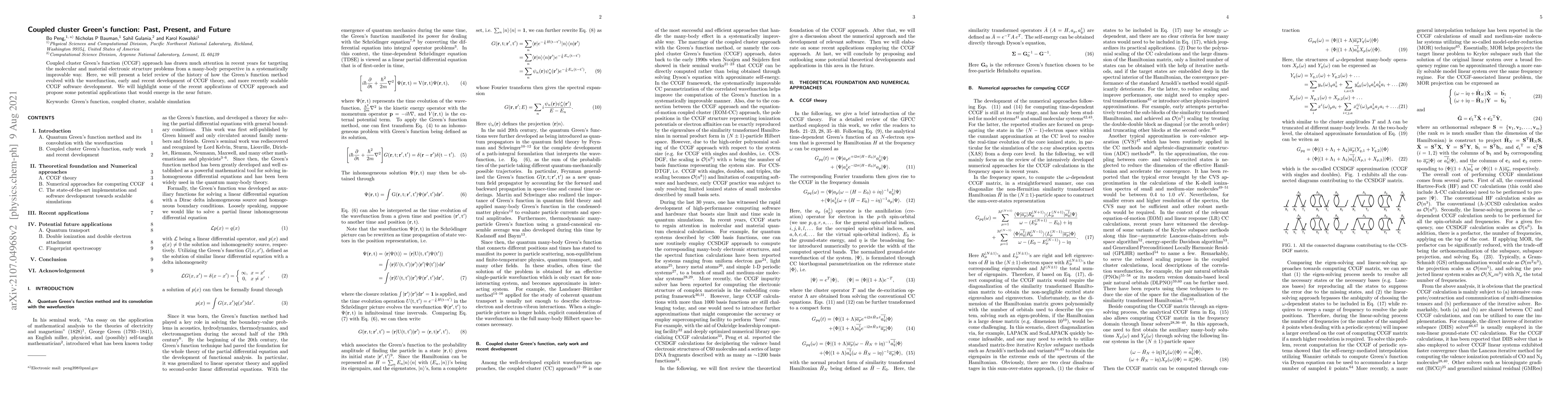 Coupled cluster Green's function (CCGF) approach has drawn much attention in recent years for targeting the molecular and material electronic structure problems from a many-body perspective in a systematically improvable way. Here, we will present a brief review of the history of how the Green's function method evolved with the wavefunction, early and recent development of CCGF theory, and more recently scalable CCGF software development. We will highlight some of the recent applications of CCGF approach and propose some potential applications that would emerge in the near future.