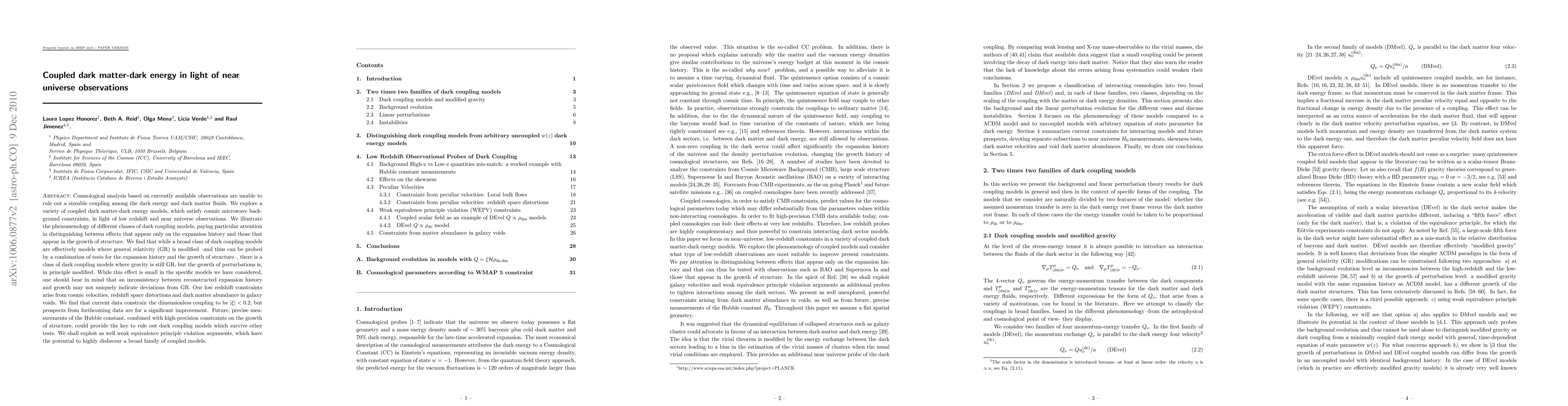 Cosmological analysis based on currently available observations are unable to rule out a sizeable coupling among the dark energy and dark matter fluids. We explore a variety of coupled dark matter-dark energy models, which satisfy cosmic microwave background constraints, in light of low redshift and near universe observations. We illustrate the phenomenology of different classes of dark coupling models, paying particular attention in distinguishing between effects that appear only on the expansion history and those that appear in the growth of structure. We find that while a broad class of dark coupling models are effectively models where general relativity (GR) is modified --and thus can be probed by a combination of tests for the expansion history and the growth of structure--, there is a class of dark coupling models where gravity is still GR, but the growth of perturbations is, in principle modified. While this effect is small in the specific models we have considered, one should bear in mind that an inconsistency between reconstructed expansion history and growth may not uniquely indicate deviations from GR. Our low redshift constraints arise from cosmic velocities, redshift space distortions and dark matter abundance in galaxy voids. We find that current data constrain the dimensionless coupling to be |xi|<0.2, but prospects from forthcoming data are for a significant improvement. Future, precise measurements of the Hubble constant, combined with high-precision constraints on the growth of structure, could provide the key to rule out dark coupling models which survive other tests. We shall exploit as well weak equivalence principle violation arguments, which have the potential to highly disfavour a broad family of coupled models.