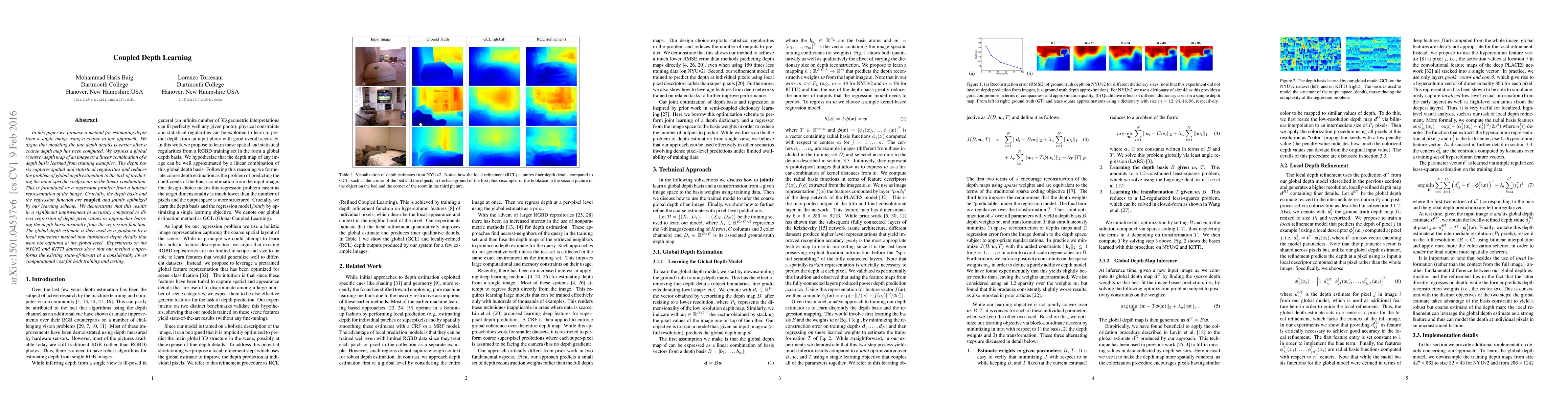 This research introduces a method to estimate depth from a single image by first creating a coarse depth map using a learned basis, then refining it for finer details. The approach improves accuracy and efficiency by jointly optimizing the depth basis and prediction process, outperforming existing methods on standard datasets.