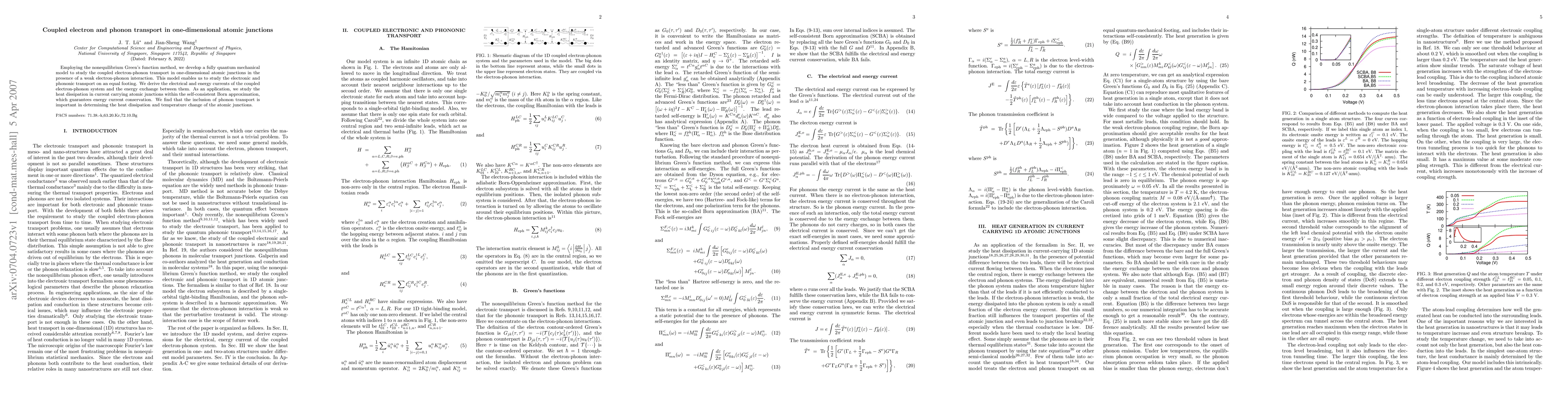 This paper develops a quantum mechanical model using nonequilibrium Green's functions to study coupled electron-phonon transport in one-dimensional atomic junctions. It highlights the significance of phonon transport in determining heat dissipation and temperature changes in current-carrying atomic junctions.