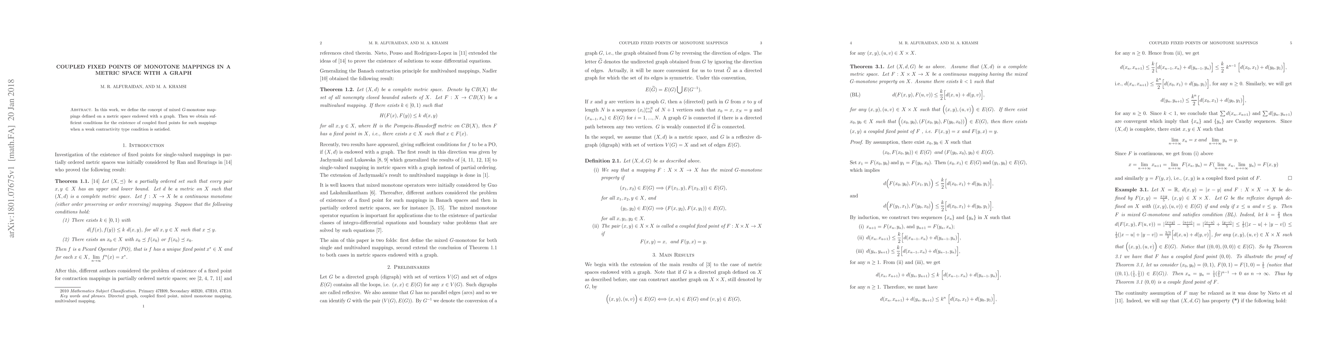 This paper introduces mixed $G$-monotone mappings on a metric space with a graph and establishes sufficient conditions for the existence of coupled fixed points under a weak contractivity condition.
