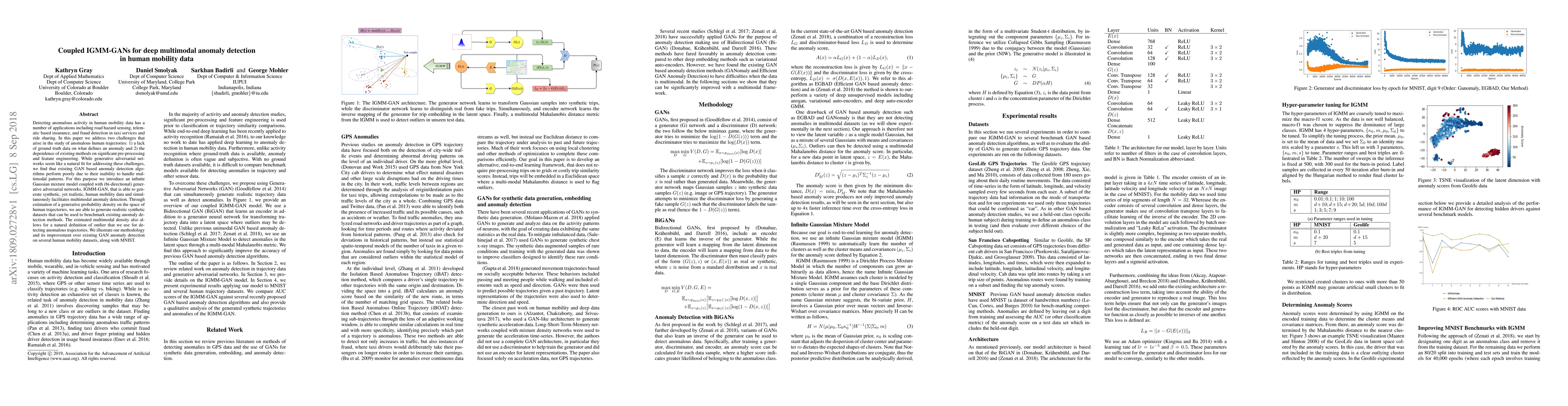 This paper introduces IGMM-GAN, a coupled infinite Gaussian mixture model and generative adversarial networks approach for multimodal anomaly detection in human mobility data, addressing the lack of ground truth data and the need for minimal pre-processing. The method generates realistic synthetic data and defines outliers naturally for improved anomaly detection.