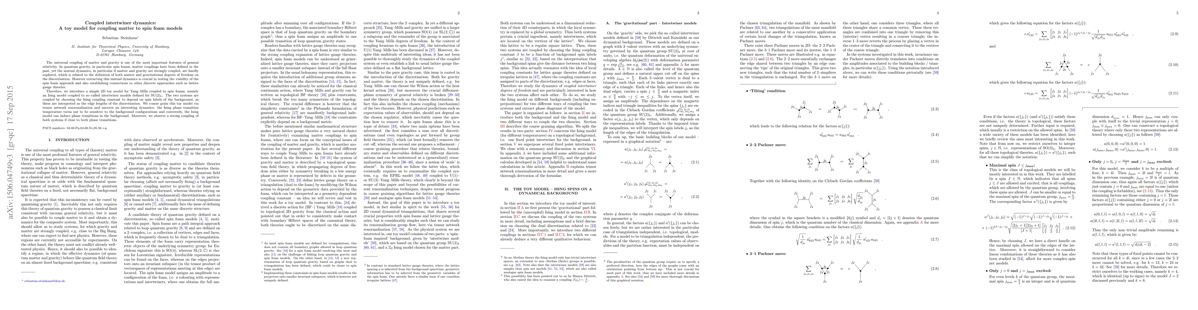 This paper introduces a 2D toy model coupling an Ising model to $\text{SU}(2)_k$ intertwiner models, demonstrating that the Ising phase transition temperature is influenced by background configurations, and vice versa, revealing a strong coupling between the systems near their respective phase transitions. This study aids in exploring the mutual dynamics in quantum gravity and testing the viability of spin foam approaches.
