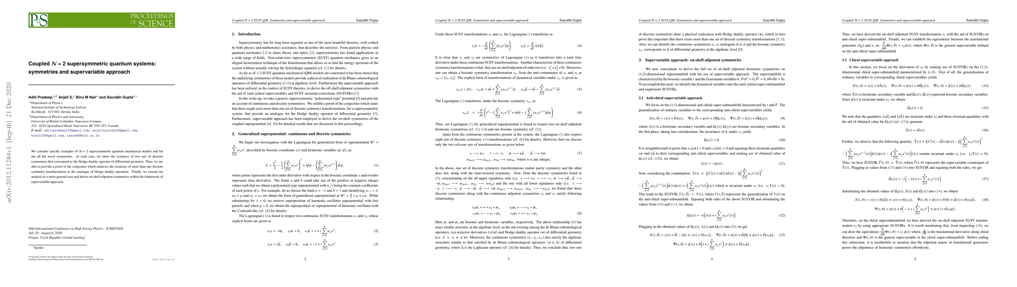 This paper explores $\mathcal{N}$ = 2 supersymmetric quantum mechanical models, identifying novel symmetries and proving the existence of multiple discrete symmetries analogous to Hodge duality. The study extends the analysis using the supervariable approach to derive on-shell nilpotent symmetries.