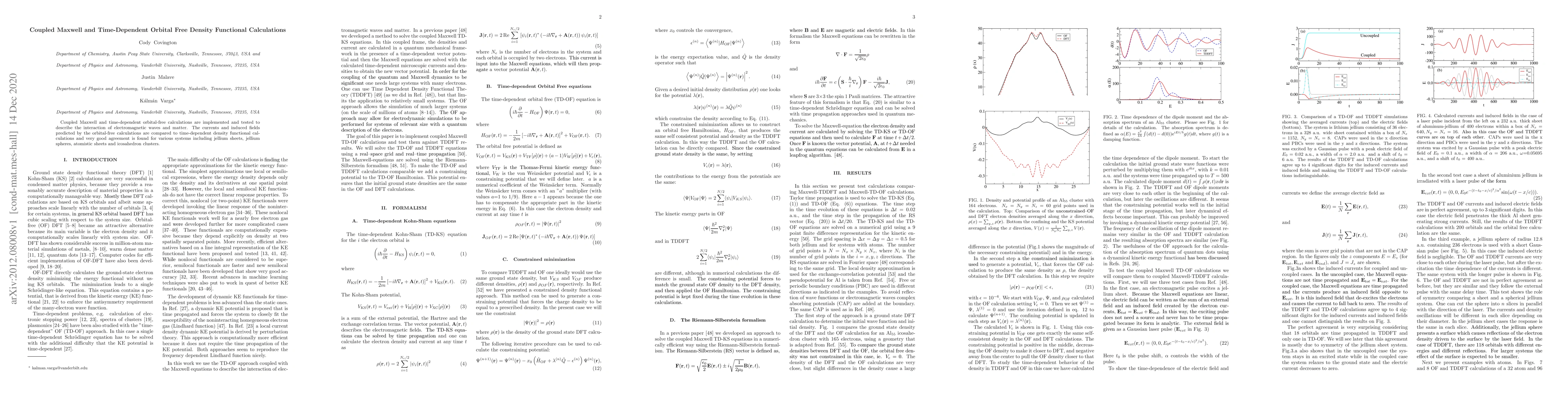 This paper presents coupled Maxwell and time-dependent orbital-free calculations to describe electromagnetic wave interactions with matter. The results show strong agreement with time-dependent density functional calculations for various systems like jellium sheets and atomistic clusters.