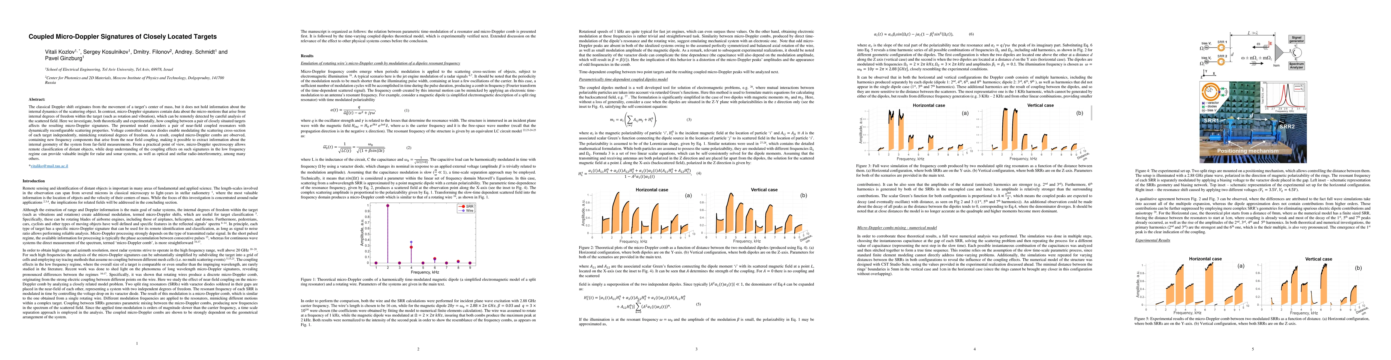 This paper explores how the micro-Doppler signatures of closely located targets are affected by coupling, using a theoretical and experimental model of near-field coupled resonators. The study reveals that coupling introduces new frequency components in the micro-Doppler combs, enabling the extraction of internal geometry information from far-field measurements, with applications in radar, sonar, and interferometry.