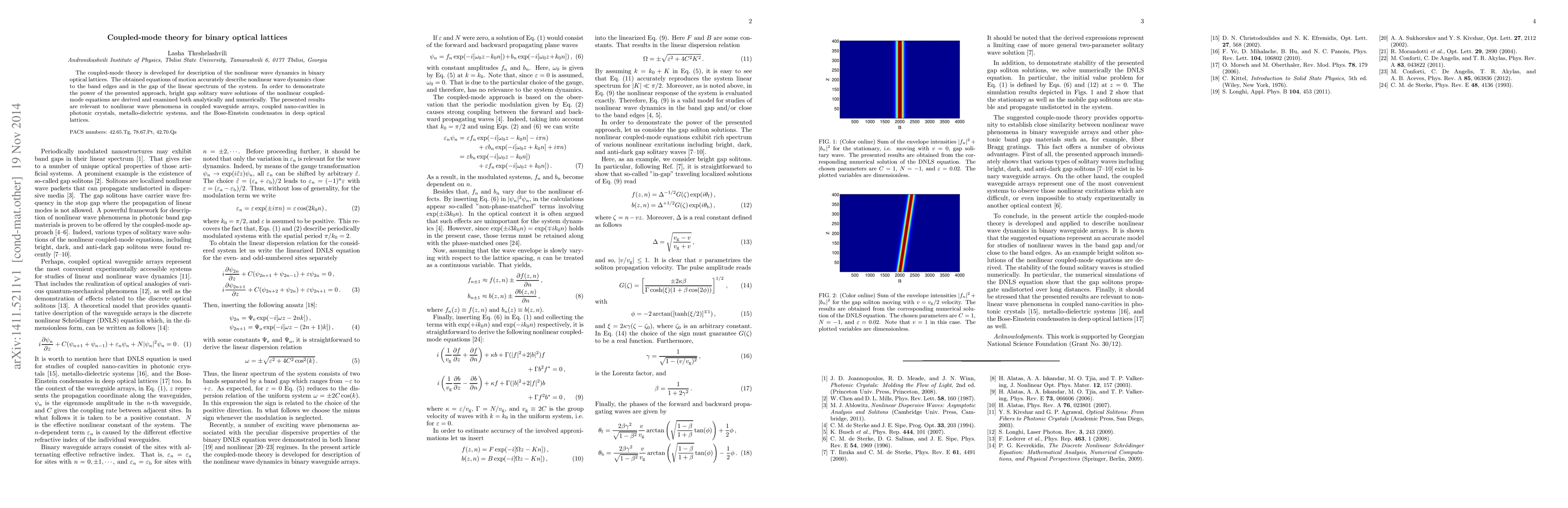 Researchers developed a coupled-mode theory to describe nonlinear wave dynamics in binary optical lattices, accurately predicting bright gap solitary wave solutions that have implications for various nonlinear wave phenomena.