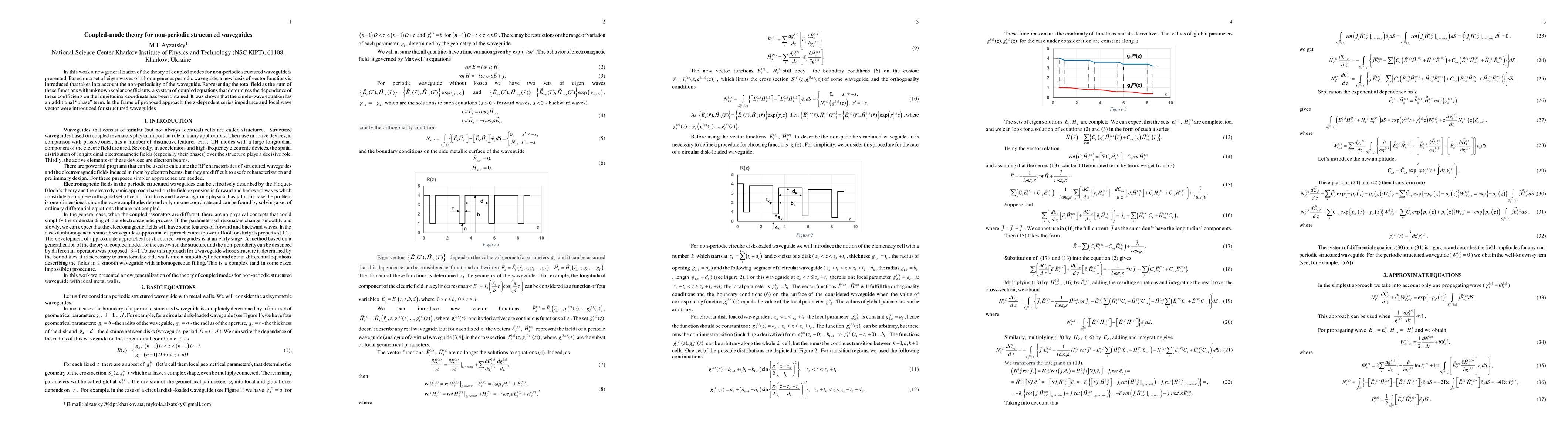 This paper generalizes coupled-mode theory for non-periodic structured waveguides by introducing a new basis of vector functions based on eigen waves of a periodic waveguide, leading to a system of coupled equations that determine the field dependence on the longitudinal coordinate, including an additional phase term and defining z-dependent series impedance and local wave vector.