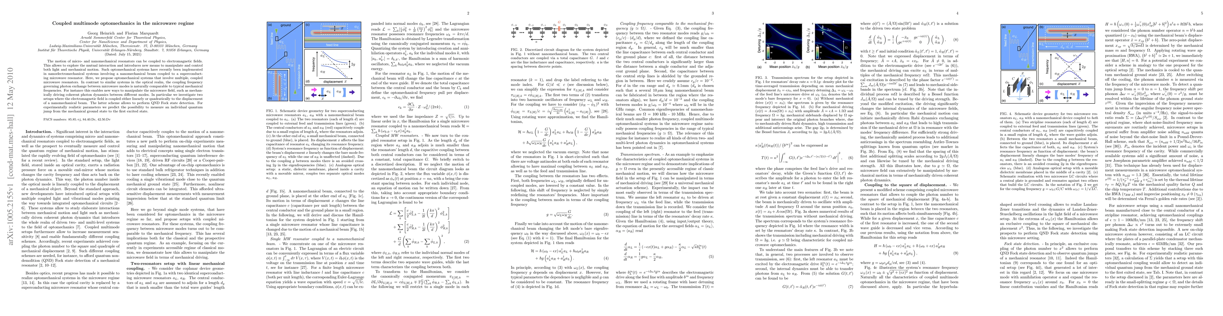 The motion of micro- and nanomechanical resonators can be coupled to electromagnetic fields. This allows to explore the mutual interaction and introduces new means to manipulate and control both light and mechanical motion. Such optomechanical systems have recently been implemented in nanoelectromechanical systems involving a nanomechanical beam coupled to a superconducting microwave resonator. Here, we propose optomechanical systems that involve multiple, coupled microwave resonators. In contrast to similar systems in the optical realm, the coupling frequency governing photon exchange between microwave modes is naturally comparable to typical mechanical frequencies. For instance this enables new ways to manipulate the microwave field, such as mechanically driving coherent photon dynamics between different modes. In particular we investigate two setups where the electromagnetic field is coupled either linearly or quadratically to the displacement of a nanomechanical beam. The latter scheme allows to perform QND Fock state detection. For experimentally realistic parameters we predict the possibility to measure an individual quantum jump from the mechanical ground state to the first excited state.