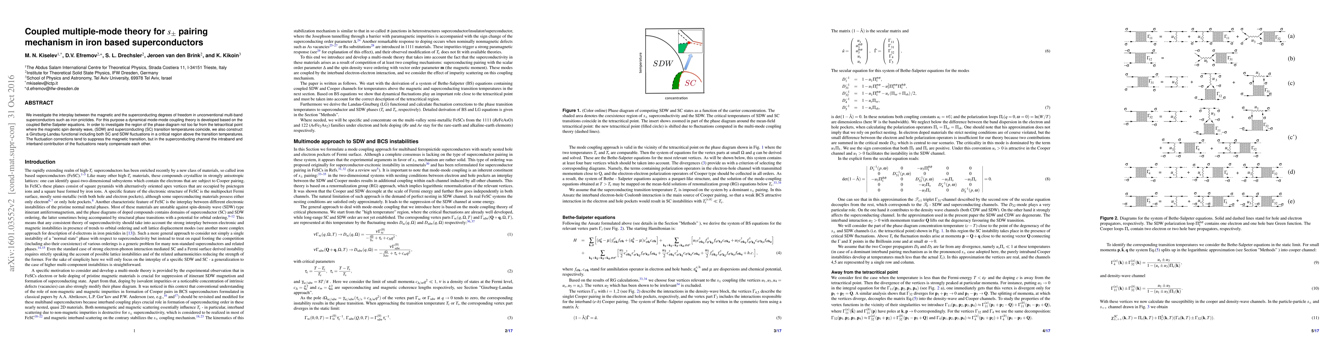 We investigate the interplay between the magnetic and the superconducting degrees of freedom in unconventional multi-band superconductors such as iron pnictides. For this purpose a dynamical mode-mode coupling theory is developed based on the coupled Bethe-Salpeter equations. In order to investigate the region of the phase diagram not too far from the tetracritical point where the magnetic spin density wave, (SDW) and superconducting (SC) transition temperatures coincide, we also construct a Ginzburg - Landau functional including both SC and SDW fluctuations in a critical region above the transition temperatures. The fluctuation corrections tend to suppress the magnetic transition, but in the superconducting channel the intraband and interband contribution of the fluctuations nearly compensate each other.
