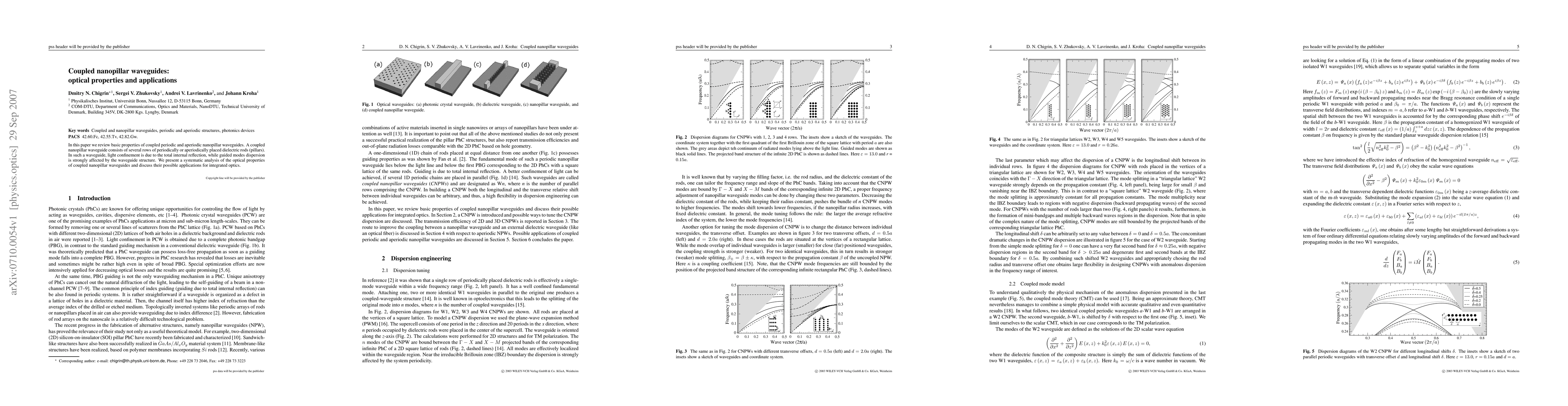 This paper reviews the optical properties and applications of coupled nanopillar waveguides, focusing on light confinement and dispersion influenced by the waveguide structure, and explores their potential use in integrated optics.