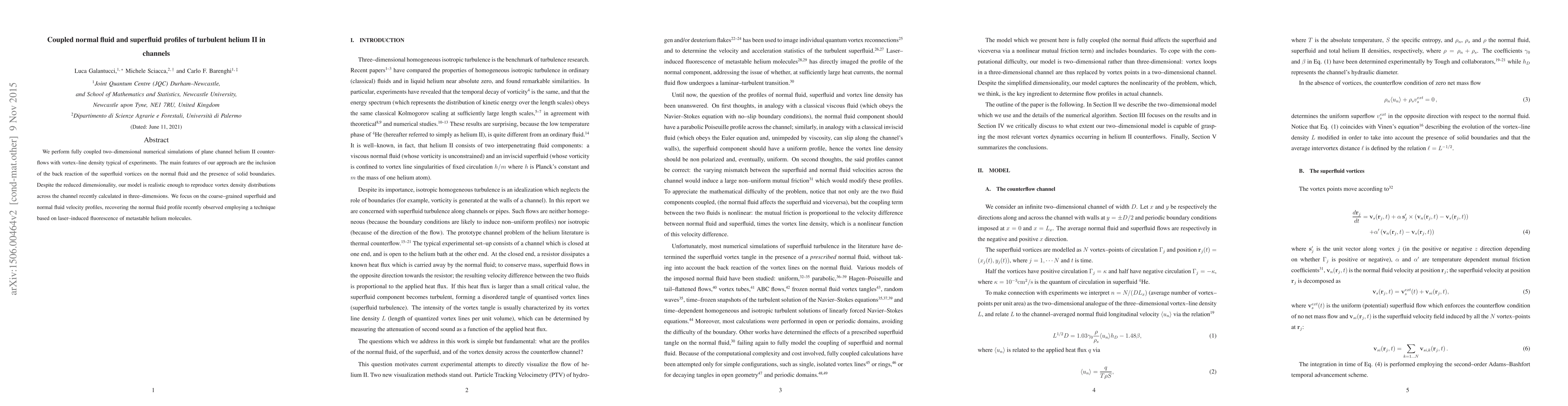This paper presents fully coupled numerical simulations of turbulent helium II in channel flows, focusing on the interaction between normal and superfluid components. The study highlights the back reaction of superfluid vortices on the normal fluid and solid boundaries, achieving realistic vortex density distributions and reproducing observed normal fluid velocity profiles.