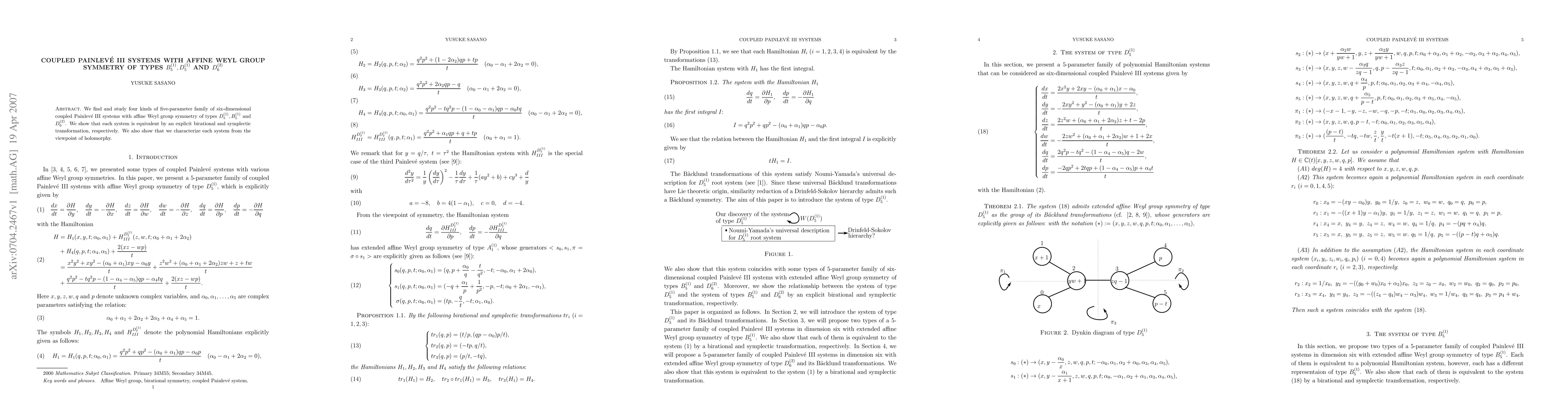 This paper identifies and investigates five-parameter families of six-dimensional coupled Painlevé III systems with affine Weyl group symmetries of types $D_5^{(1)}, B_5^{(1)}$, and $D_6^{(2)}$. It demonstrates the equivalence of these systems through explicit birational and symplectic transformations and characterizes them from the perspective of holomorphy.