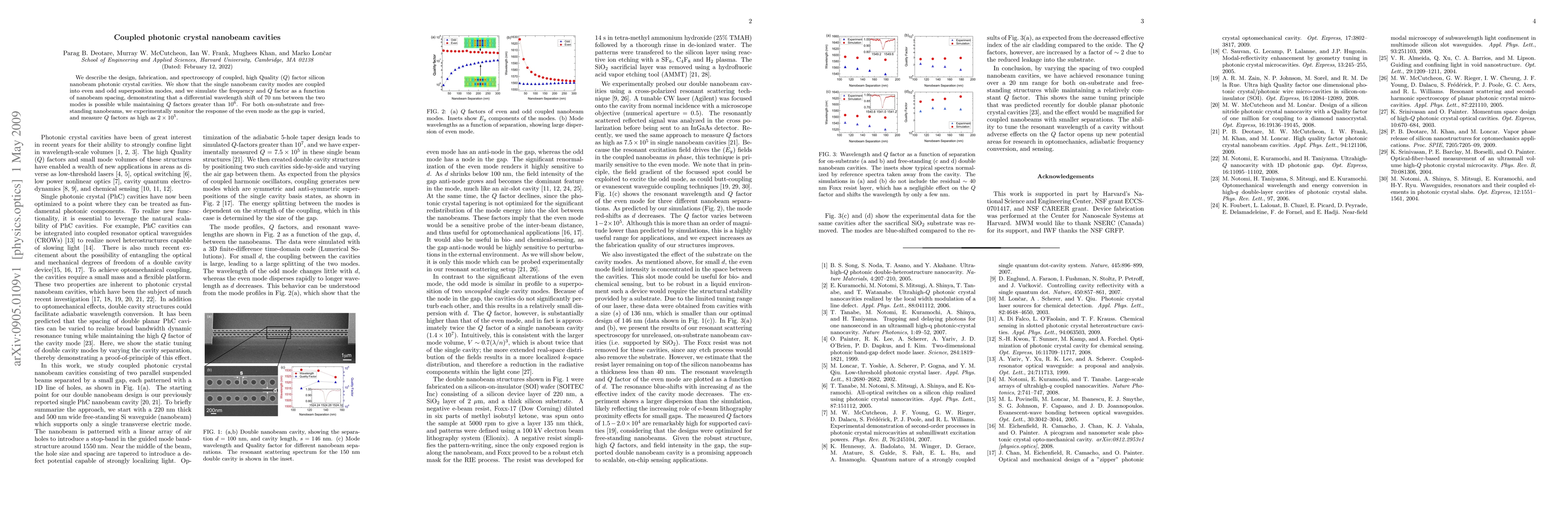 This paper details the design and fabrication of coupled silicon nanobeam photonic crystal cavities, demonstrating high Q factors and a differential wavelength shift of 70 nm between coupled modes, with experimental measurements achieving Q factors up to 200,000.