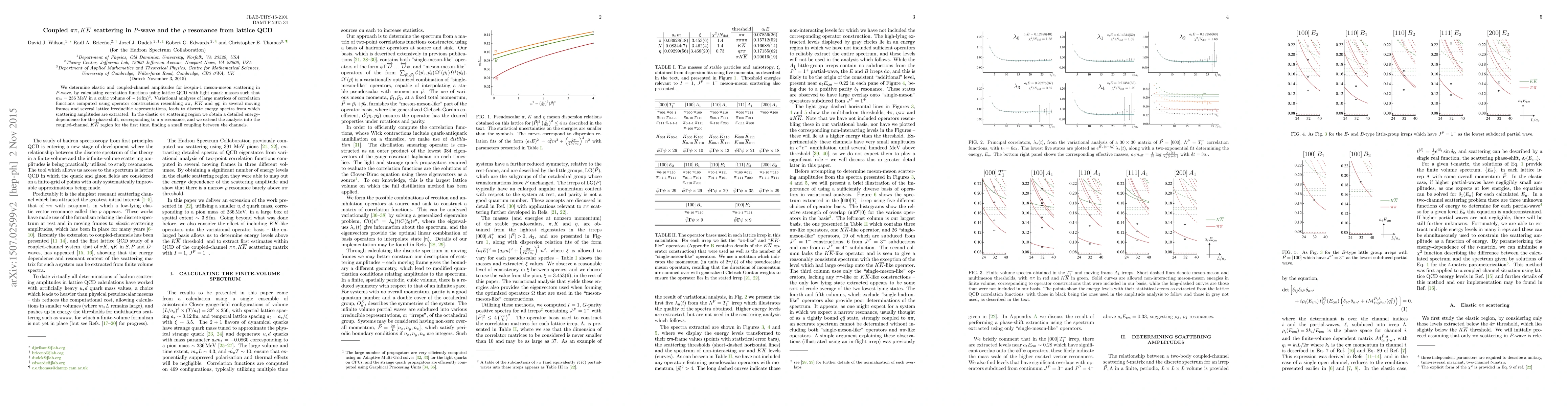 This paper uses lattice QCD to calculate $P$-wave scattering amplitudes for isospin-1 meson pairs, revealing a detailed phase-shift corresponding to a $\rho$ resonance in $\pi\pi$ scattering and identifying a minor coupling in the coupled $\pi\pi$ and $K\overline{K}$ channels.