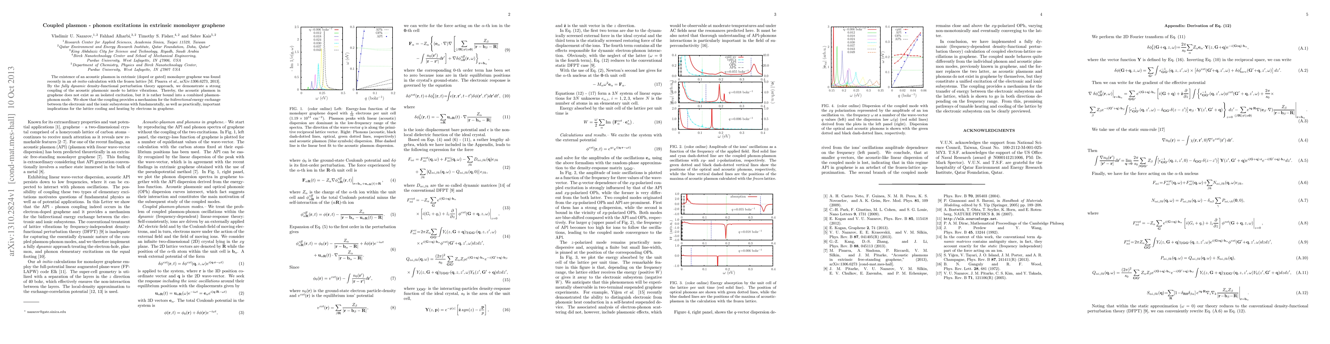 This work distinguishes itself by going beyond the frozen lattice approximation, demonstrating that acoustic plasmons in extrinsic graphene are not isolated excitations but are coupled to lattice vibrations, forming a unique plasmon-phonon mode.