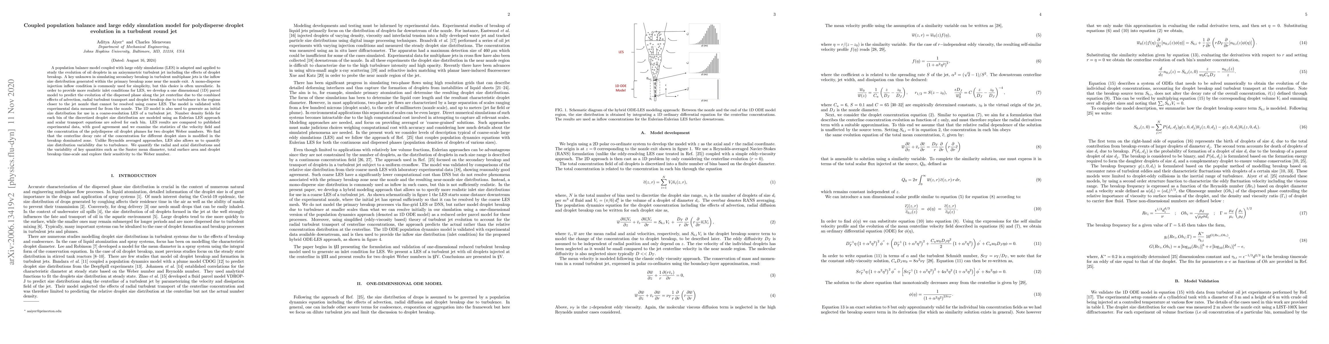 A new model combines population balance and large eddy simulation to study oil droplet evolution in turbulent jets, providing more realistic inlet conditions for simulations and capturing the effects of turbulence on droplet size distribution.