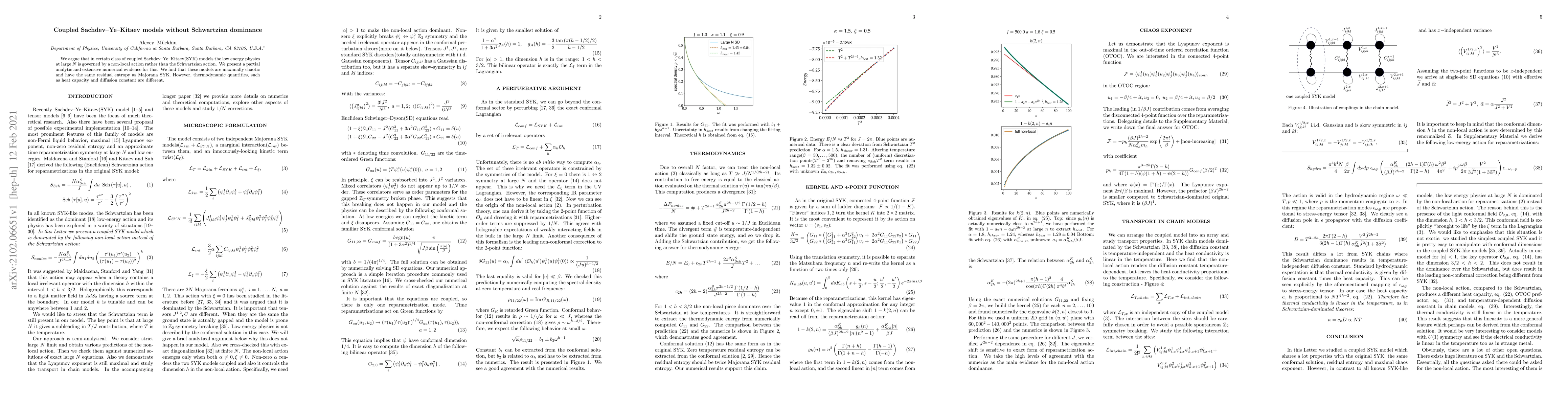 We argue that in certain class of coupled Sachdev-Ye-Kitaev(SYK) models the low energy physics at large N is governed by a non-local action rather than the Schwartzian action. We present a partial analytic and extensive numerical evidence for this. We find that these models are maximally chaotic and have the same residual entropy as Majorana SYK. However, thermodynamic quantities, such as heat capacity and diffusion constant are different.