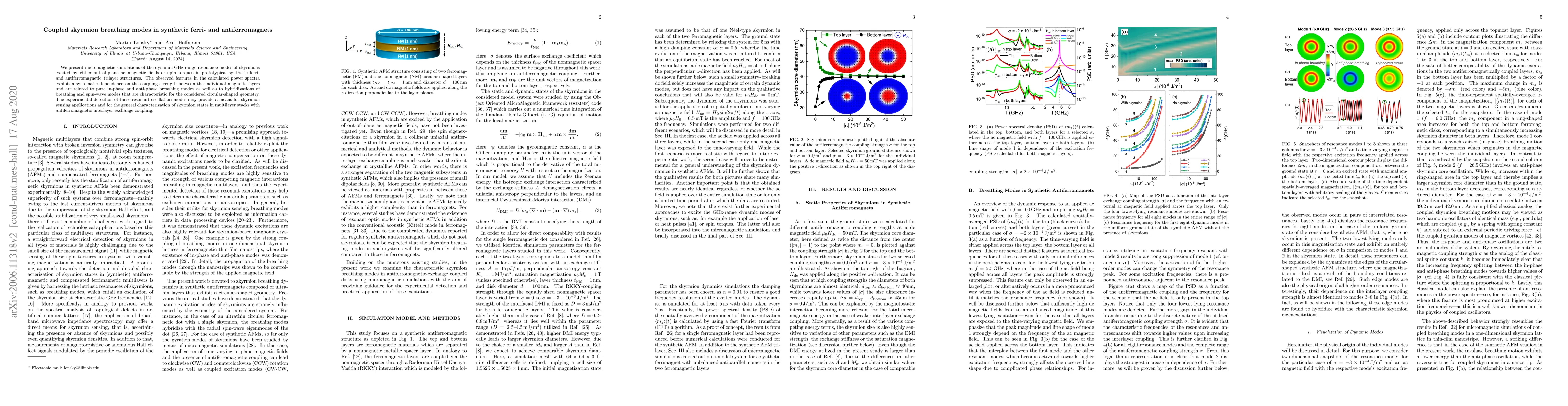 This paper uses micromagnetic simulations to study GHz-range resonance modes of skyrmions in synthetic ferri- and antiferromagnetic trilayer structures, revealing distinct breathing modes dependent on interlayer coupling. The findings suggest potential applications in skyrmion sensing and characterization of skyrmion states in multilayer systems.