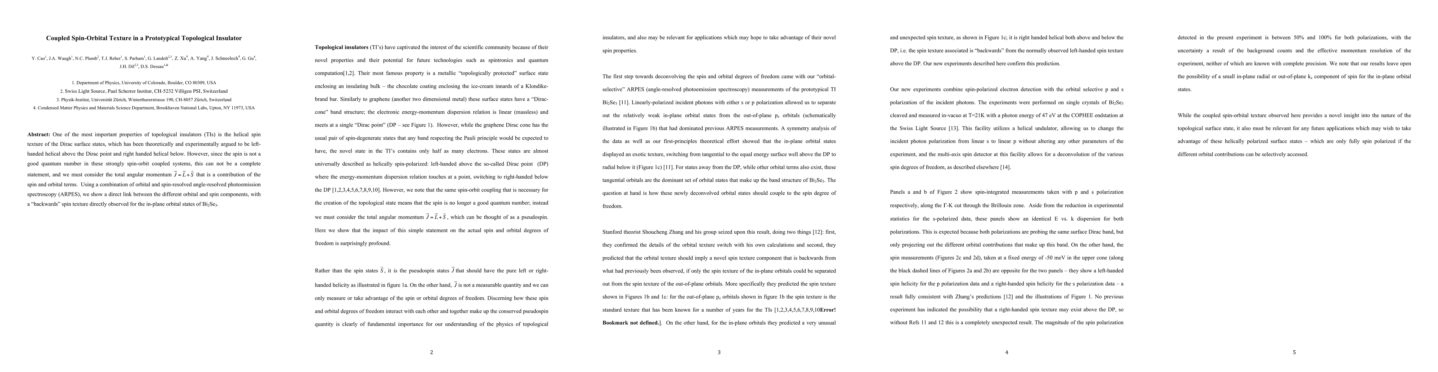 This study demonstrates a coupled spin-orbital texture in Bi2Se3, a topological insulator, using advanced spectroscopic techniques. It reveals a "backwards" spin texture in in-plane orbital states, highlighting the necessity to consider total angular momentum for a complete understanding.