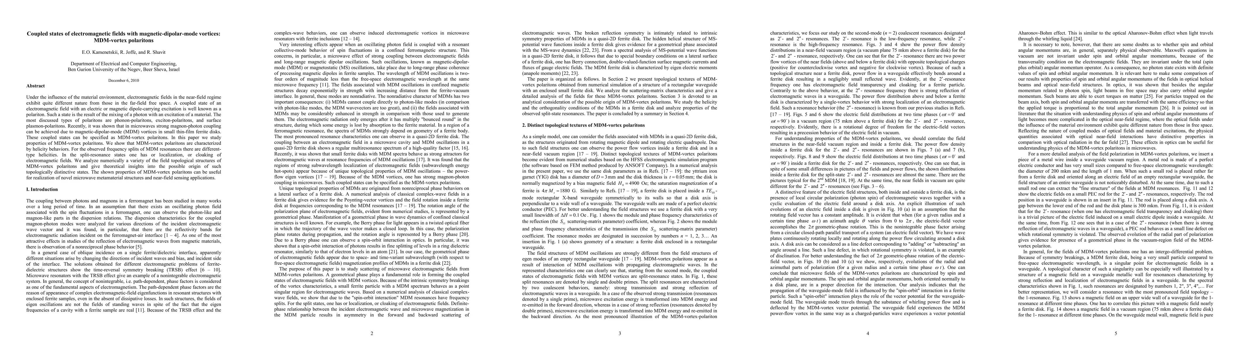 Researchers discovered polaritons with magnetic-dipolar-mode vortices that exhibit helicity behaviors, including localization and cloaking of electromagnetic fields, offering potential for novel microwave metamaterial structures and near-field sensing applications.