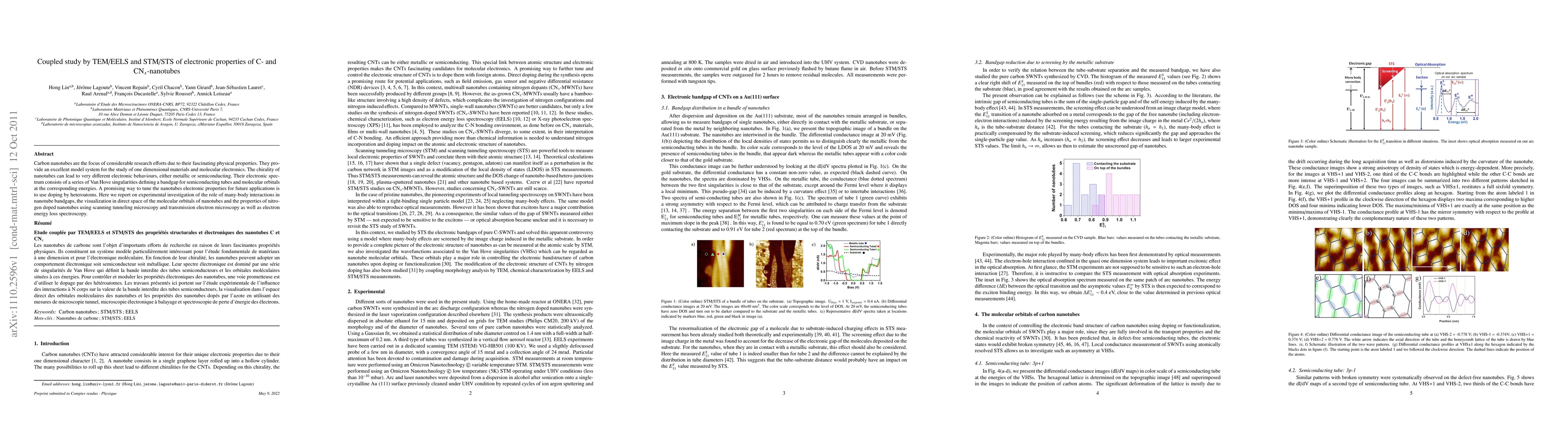 This paper investigates the electronic properties of carbon and nitrogen-doped carbon nanotubes using TEM/EELS and STM/STS techniques. It focuses on the role of many-body interactions in bandgaps, visualization of molecular orbitals, and the effects of nitrogen doping on the electronic behavior of nanotubes.