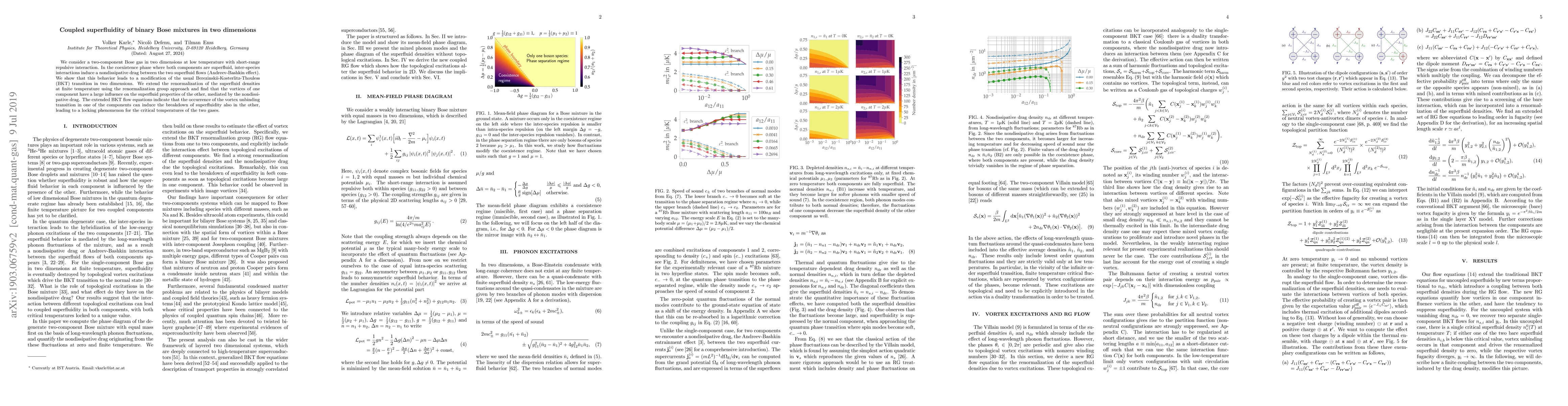 We consider a two-component Bose gas in two dimensions at low temperature with short-range repulsive interaction. In the coexistence phase where both components are superfluid, inter-species interactions induce a nondissipative drag between the two superfluid flows (Andreev-Bashkin effect). We show that this behavior leads to a modification of the usual Berezinskii-Kosterlitz-Thouless (BKT) transition in two dimensions. We extend the renormalization of the superfluid densities at finite temperature using the renormalization group approach and find that the vortices of one component have a large influence on the superfluid properties of the other, mediated by the nondissipative drag. The extended BKT flow equations indicate that the occurrence of the vortex unbinding transition in one of the components can induce the breakdown of superfluidity also in the other, leading to a locking phenomenon for the critical temperatures of the two gases.