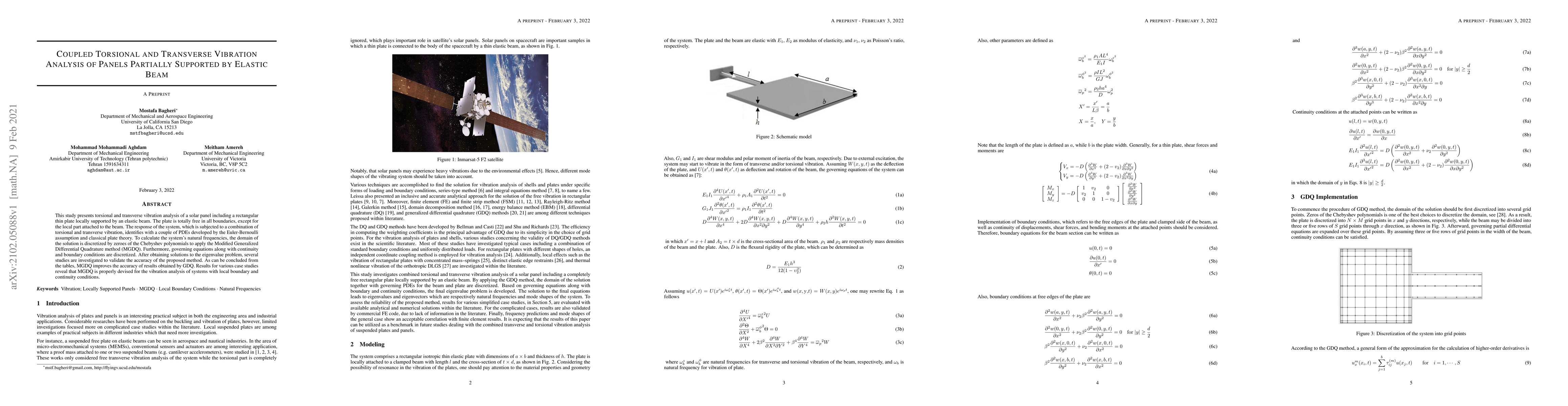 This study analyzes the coupled torsional and transverse vibrations of a solar panel partially supported by an elastic beam using the Modified Generalized Differential Quadrature method (MGDQ). The results show that MGDQ enhances accuracy compared to traditional GDQ, making it effective for systems with local boundary conditions.