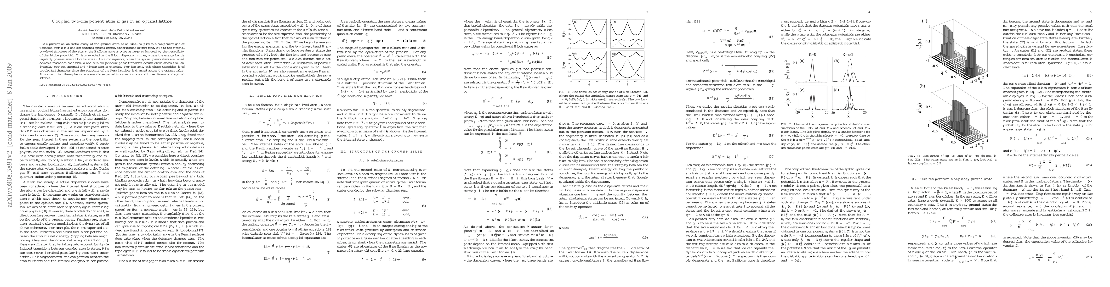 This study explores the ground state of an ideal coupled two-component gas of ultracold atoms in an optical lattice, revealing a non-zero temperature phase transition due to the interplay between internal and kinetic energies. For fermionic atoms, the transition is topological, altering the Fermi surface structure.