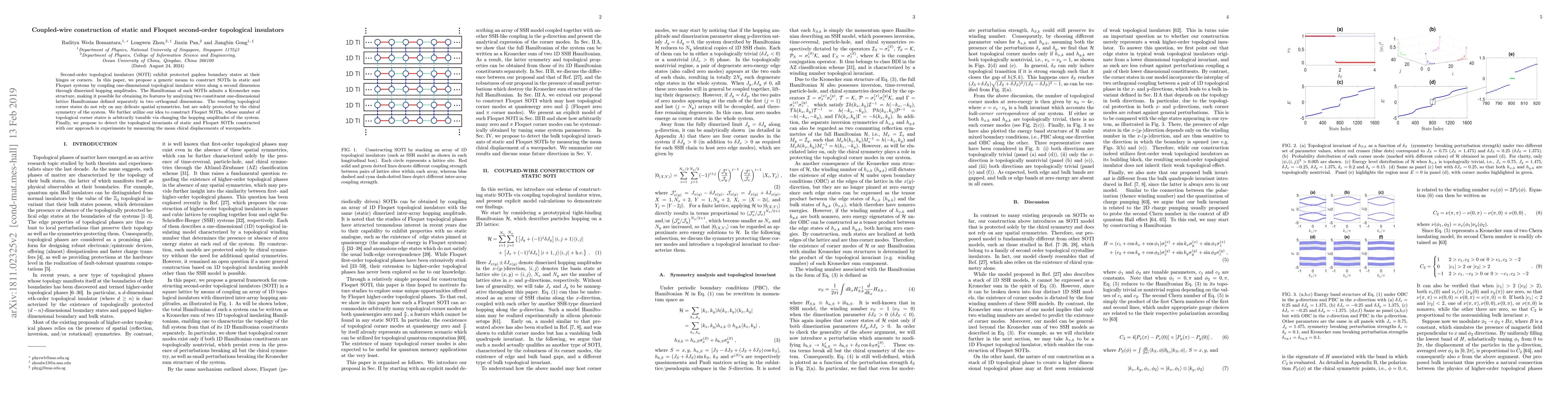 Second-order topological insulators (SOTI) exhibit protected gapless boundary states at their hinges or corners. In this paper, we propose a generic means to construct SOTIs in static and Floquet systems by coupling one-dimensional topological insulator wires along a second dimension through dimerized hopping amplitudes. The Hamiltonian of such SOTIs admits a Kronecker sum structure, making it possible for obtaining its features by analyzing two constituent one-dimensional lattice Hamiltonians defined separately in two orthogonal dimensions. The resulting topological corner states do not rely on any delicate spatial symmetries, but are solely protected by the chiral symmetry of the system. We further utilize our idea to construct Floquet SOTIs, whose number of topological corner states is arbitrarily tunable via changing the hopping amplitudes of the system. Finally, we propose to detect the topological invariants of static and Floquet SOTIs constructed following our approach in experiments by measuring the mean chiral displacements of wavepackets.