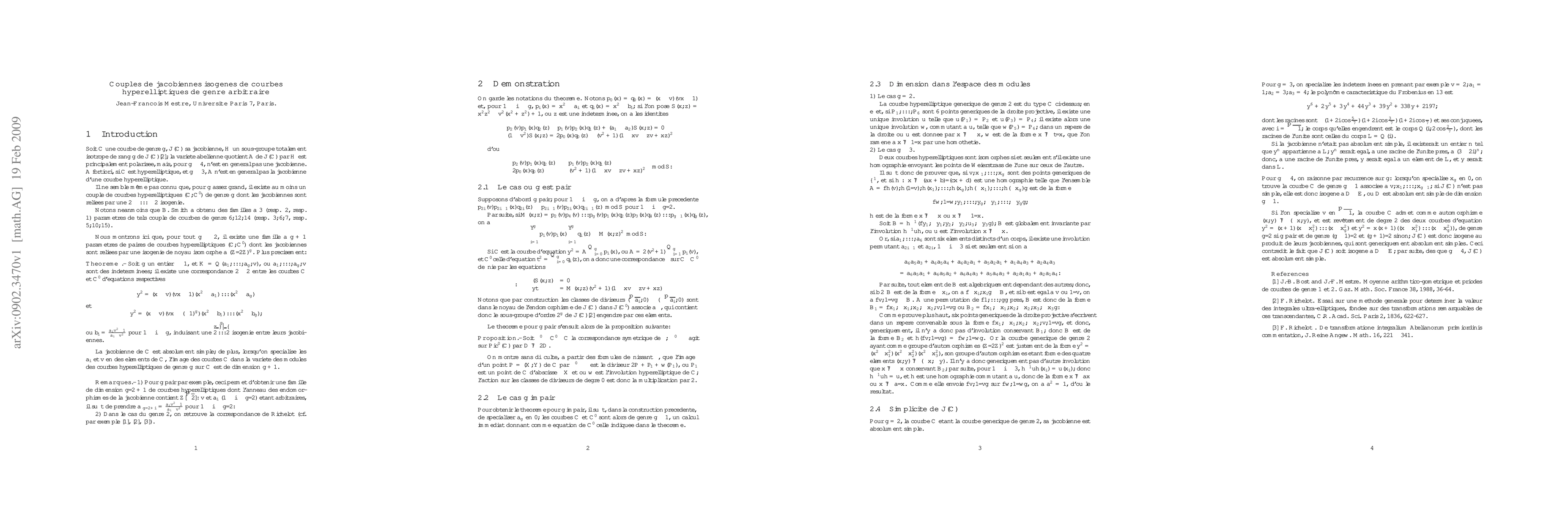 Summary: This research constructs a family of dimension g+1 for pairs of hyperelliptic curves of genus g ≥ 2, where their Jacobians are 2^g isogeneous. Les chercheurs construisent une famille de courbes hyperelliptiques de genre g ≥ 2 dont les jacobiennes sont 2^g isogènes.
