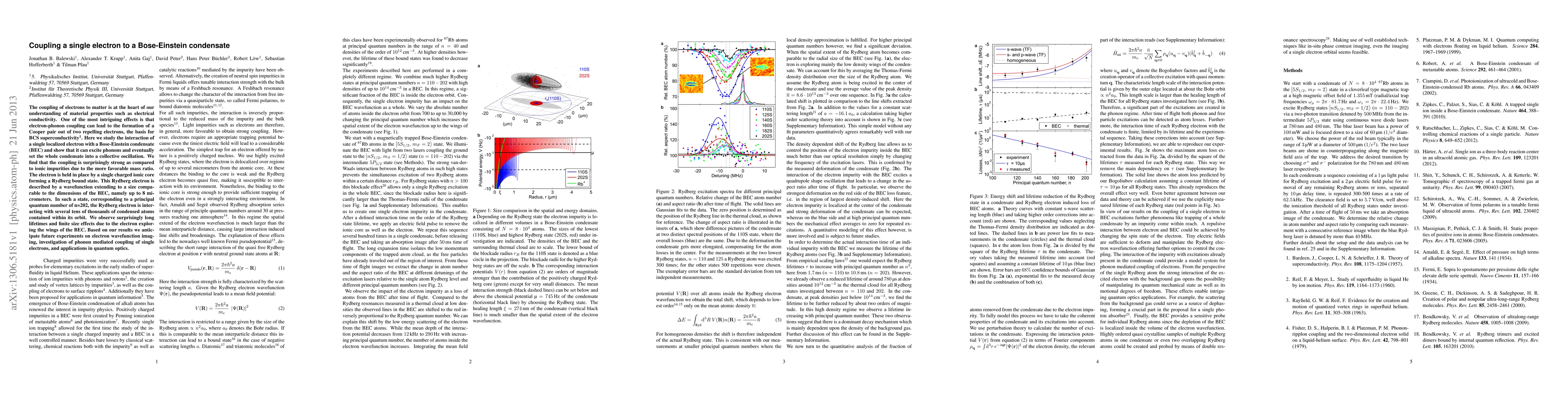 This paper investigates the interaction of a single localized electron with a Bose-Einstein condensate, demonstrating strong coupling that excites phonons and induces collective oscillations. The Rydberg electron, held by a charged ionic core, exhibits long lifetimes and significant finite size effects, paving the way for future studies in electron wavefunction imaging and quantum optics.
