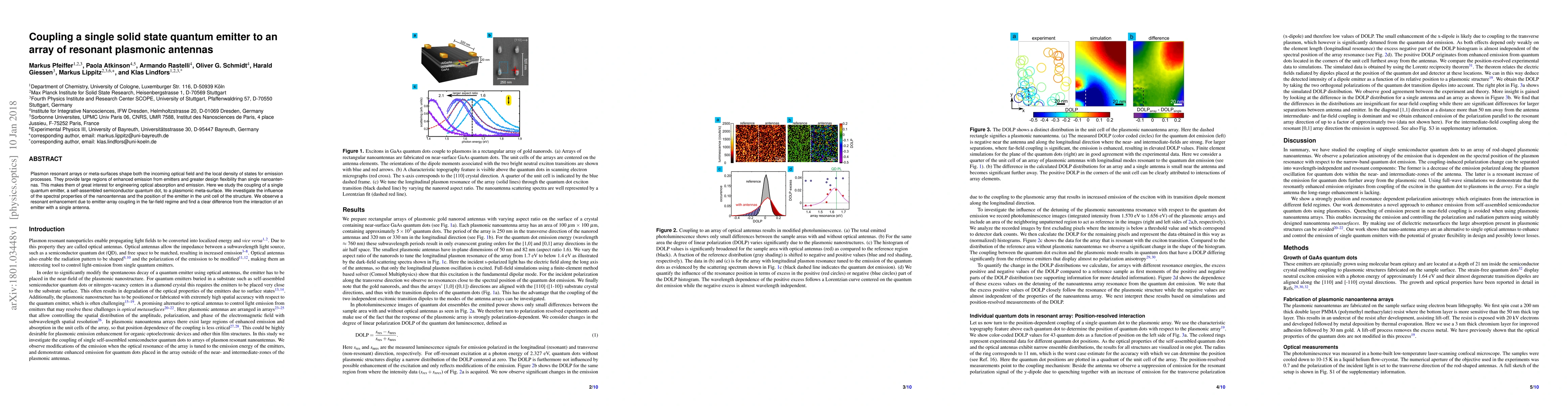 This paper investigates the coupling of a single quantum emitter to an array of plasmonic antennas, demonstrating enhanced emission due to the meta-surface's ability to shape the optical field and local density of states. The study reveals significant differences in the interaction between a quantum dot and a single antenna versus an array, highlighting the potential of plasmonic meta-surfaces for optical engineering.