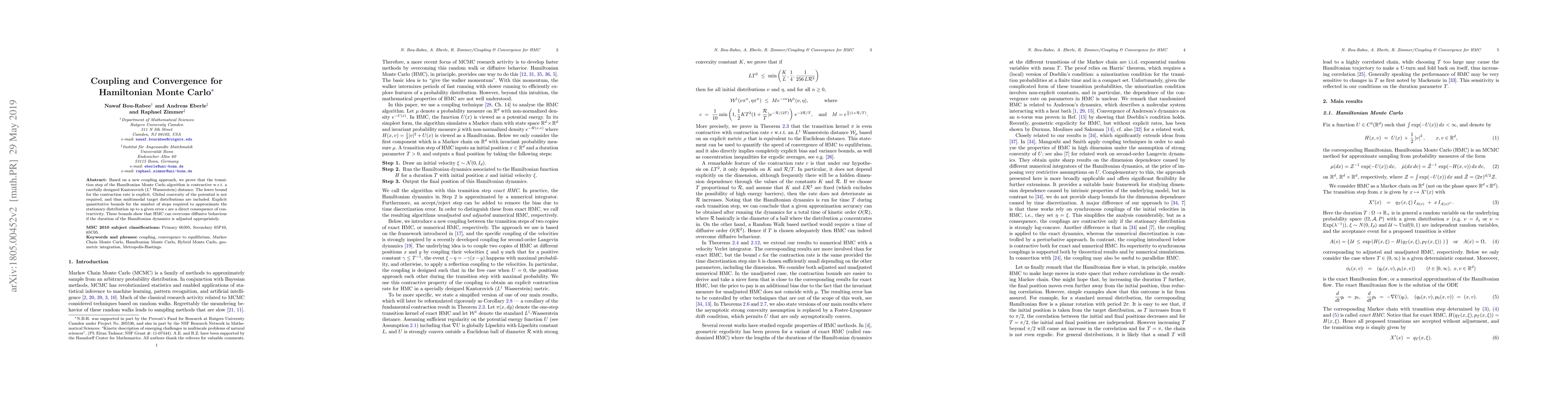 Based on a new coupling approach, we prove that the transition step of the Hamiltonian Monte Carlo algorithm is contractive w.r.t. a carefully designed Kantorovich (L1 Wasserstein) distance. The lower bound for the contraction rate is explicit. Global convexity of the potential is not required, and thus multimodal target distributions are included. Explicit quantitative bounds for the number of steps required to approximate the stationary distribution up to a given error are a direct consequence of contractivity. These bounds show that HMC can overcome diffusive behaviour if the duration of the Hamiltonian dynamics is adjusted appropriately.