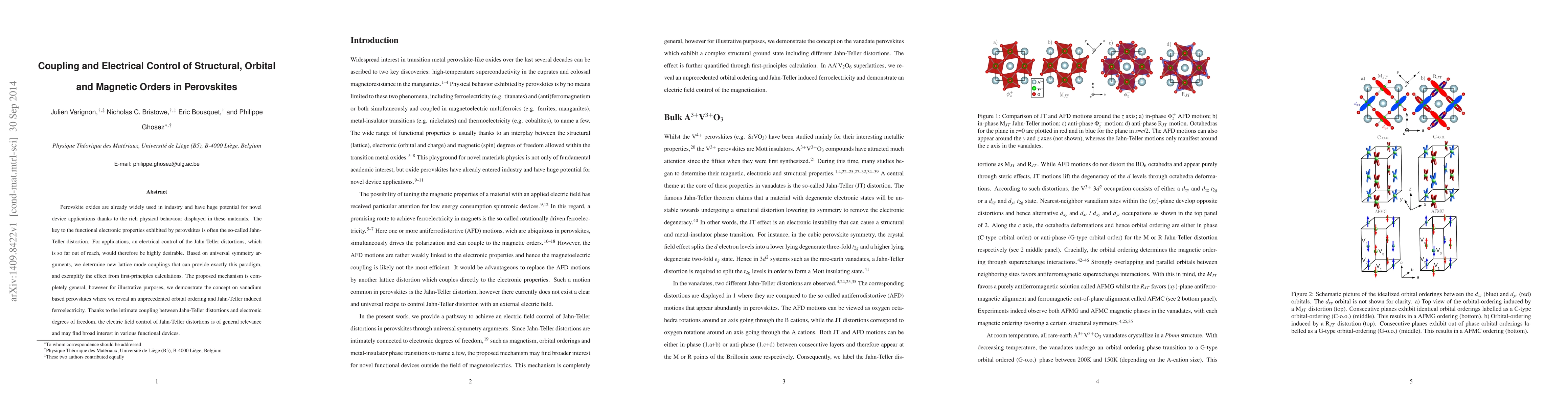 This paper proposes a universal mechanism for electrically controlling Jahn-Teller distortions in perovskite oxides, demonstrated through first-principles calculations on vanadium-based perovskites, revealing potential for new device applications.