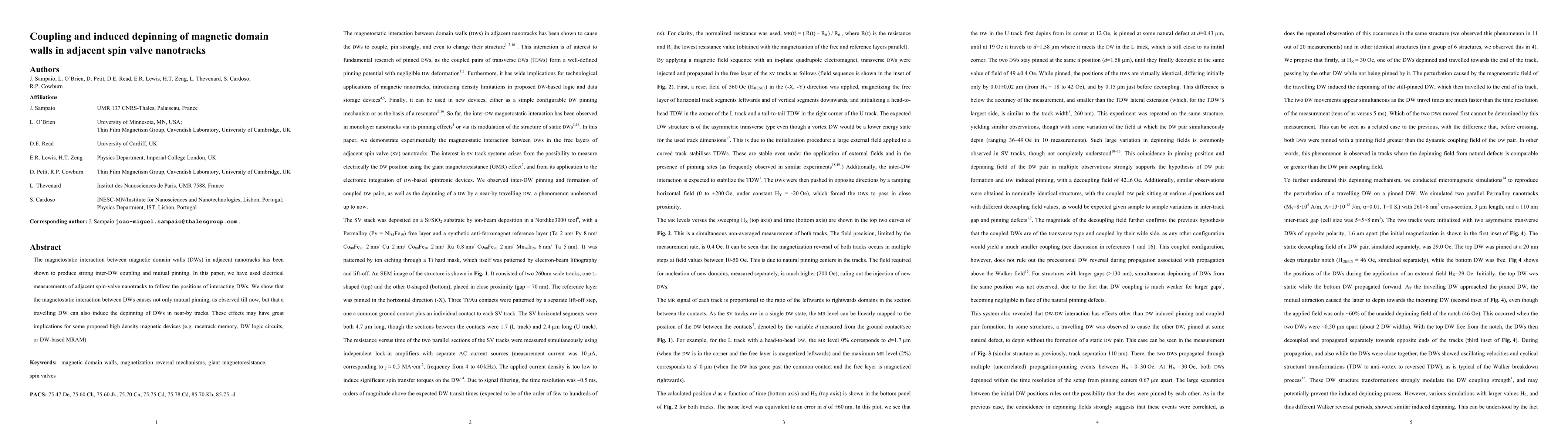 Researchers discovered that magnetic domain walls in adjacent spin-valve nanotracks can induce depinning of nearby walls through magnetostatic interaction, with potential implications for high-density magnetic devices.