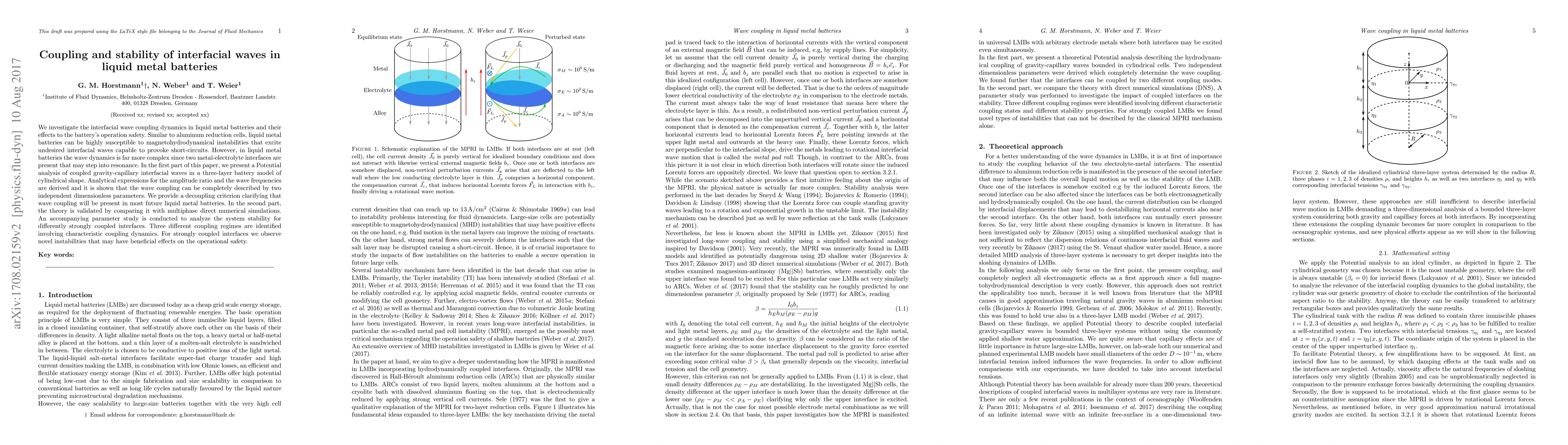This paper analyzes the coupling dynamics of interfacial waves in liquid metal batteries, deriving analytical expressions for wave coupling and identifying three coupling regimes. It concludes that wave coupling is likely in future designs, and strongly coupled interfaces may introduce novel instabilities that enhance operational safety.