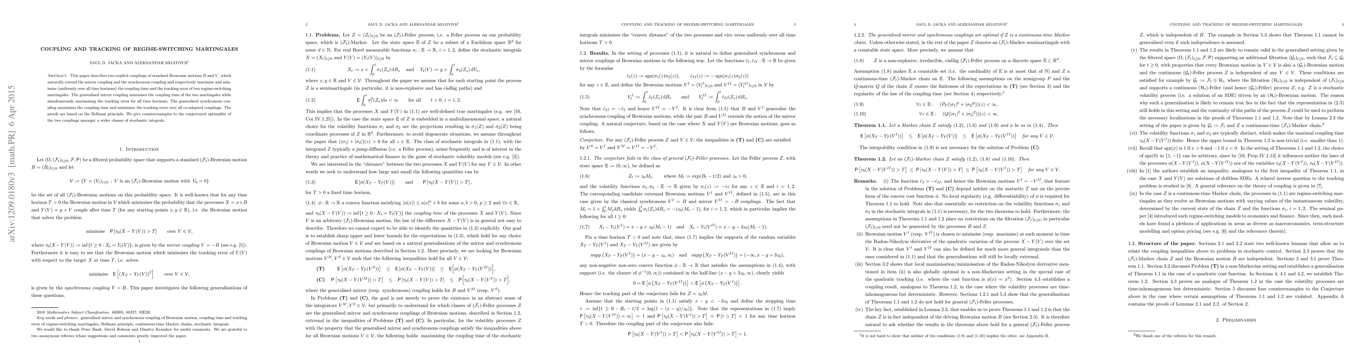 This paper describes two explicit couplings of standard Brownian motions $B$ and $V$, which naturally extend the mirror coupling and the synchronous coupling and respectively maximise and minimise (uniformly over all time horizons) the coupling time and the tracking error of two regime-switching martingales. The generalised mirror coupling minimizes the coupling time of the two martingales while simultaneously maximising the tracking error for all time horizons. The generalised synchronous coupling maximises the coupling time and minimises the tracking error over all co-adapted couplings. The proofs are based on the Bellman principle. We give counterexamples to the conjectured optimality of the two couplings amongst a wider classes of stochastic integrals.