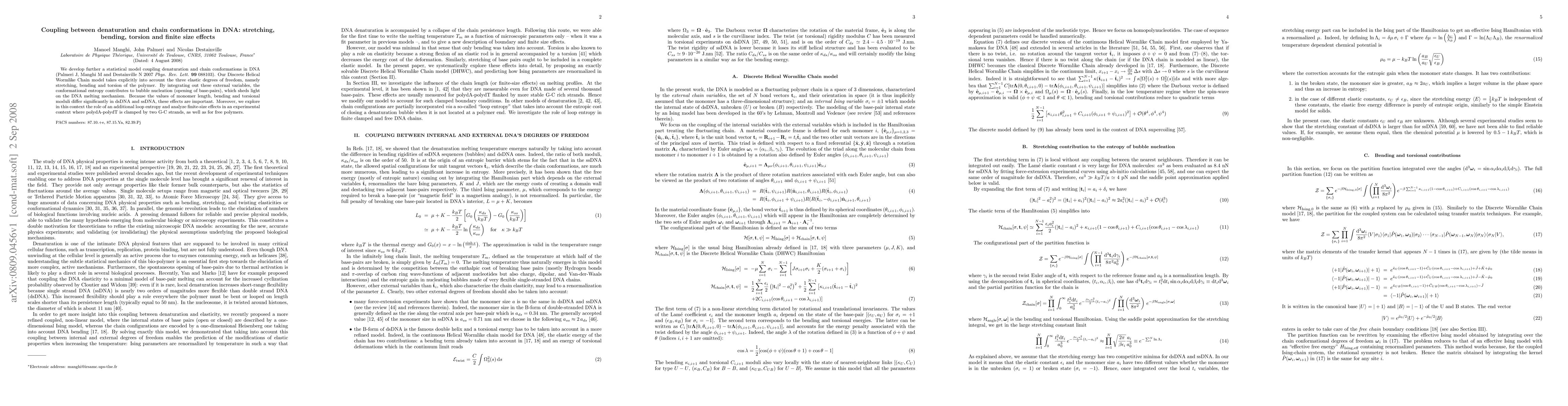 This paper develops a statistical model to link denaturation and DNA chain conformations, considering stretching, bending, and torsion. The Discrete Helical Wormlike Chain model elucidates how conformational entropy influences bubble nucleation, providing insights into the DNA melting mechanism, and examines finite-size effects and loop entropy in clamped and free polymers.