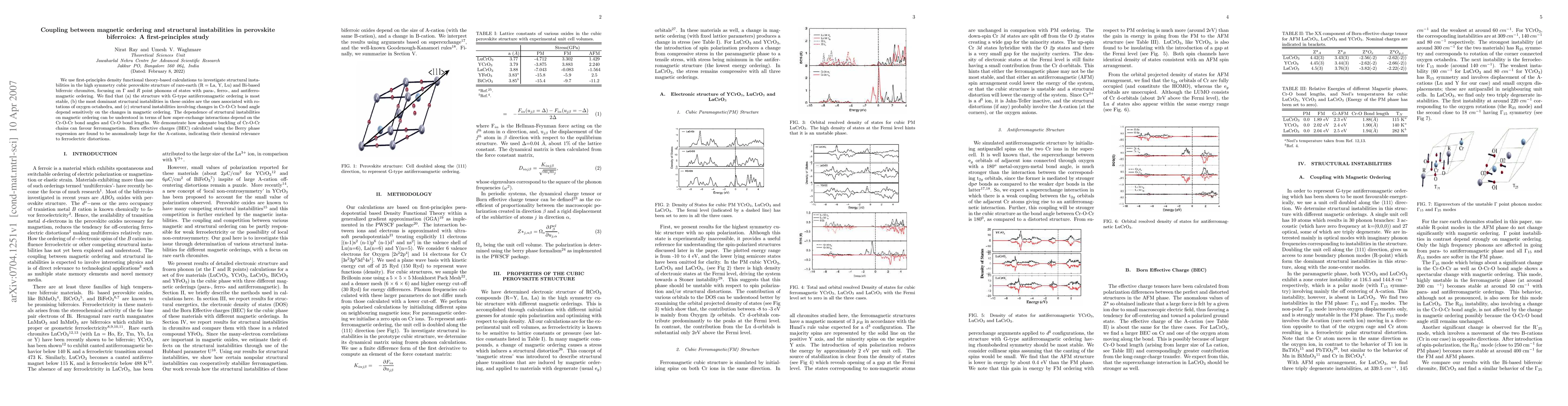 This study uses first-principles calculations to explore structural instabilities in perovskite biferroic chromites, finding that G-type antiferromagnetic ordering is the most stable configuration. The research reveals that structural changes, particularly octahedra rotations, are closely linked to magnetic ordering, with Cr-O-Cr bond angles playing a crucial role in super-exchange interactions and ferromagnetism.
