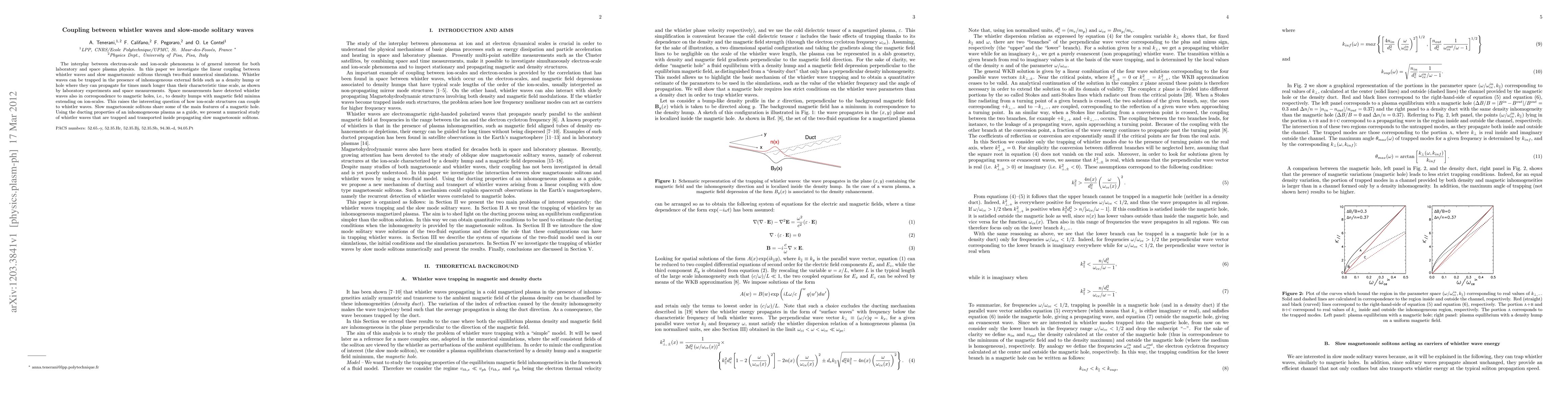 This paper investigates the linear coupling between whistler waves and slow magnetosonic solitons using two-fluid numerical simulations, focusing on how whistler waves can be trapped and transported within slow magnetosonic solitons in inhomogeneous plasma environments. The study highlights the potential interaction between electron-scale and ion-scale phenomena in space and laboratory plasma physics.