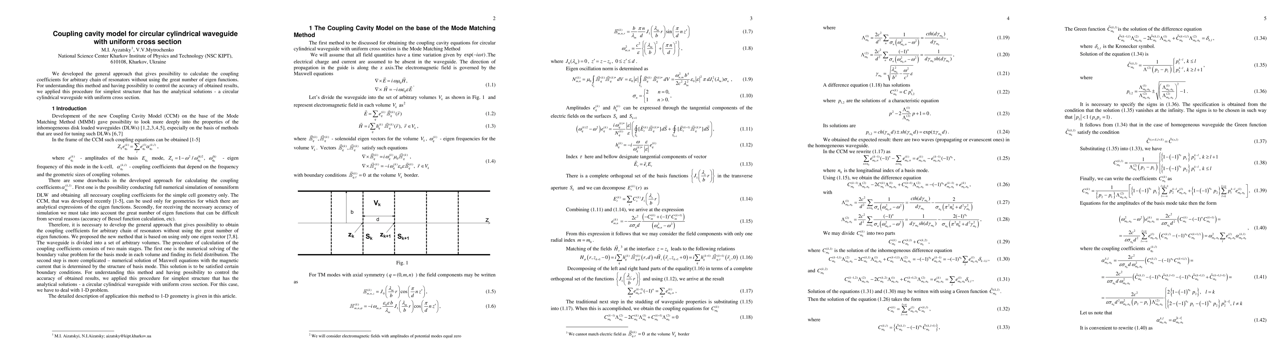 We developed the general approach that gives possibility to calculate the coupling coefficients for arbitrary chain of resonators without using the great number of eigen functions. For understanding this method and having possibility to control the accuracy of obtained results, we applied this procedure for simplest structure that has the analytical solutions - a circular cylindrical waveguide with uniform cross section.