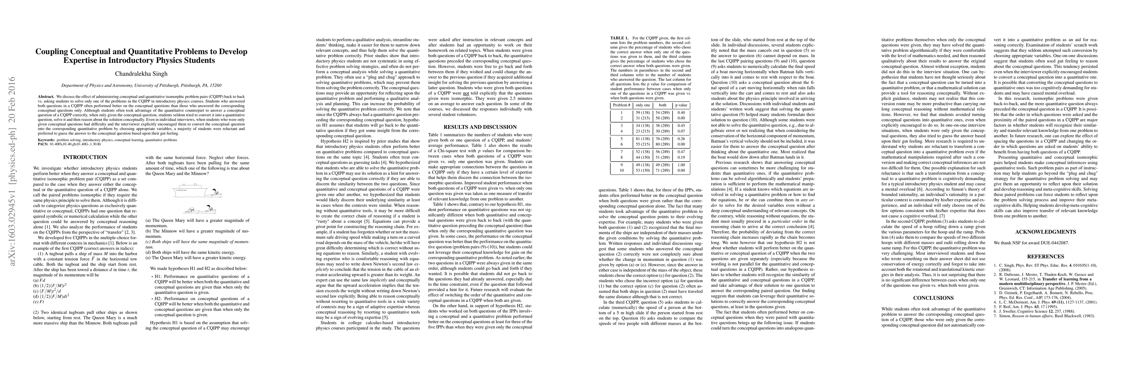 This study examines the impact of solving isomorphic conceptual and quantitative problem pairs (CQIPP) in introductory physics, finding that students who solve both types of problems perform better on conceptual questions than those who only solve conceptual problems. Students often use quantitative insights to answer conceptual questions but rarely convert conceptual questions into quantitative problems when only given the conceptual version.