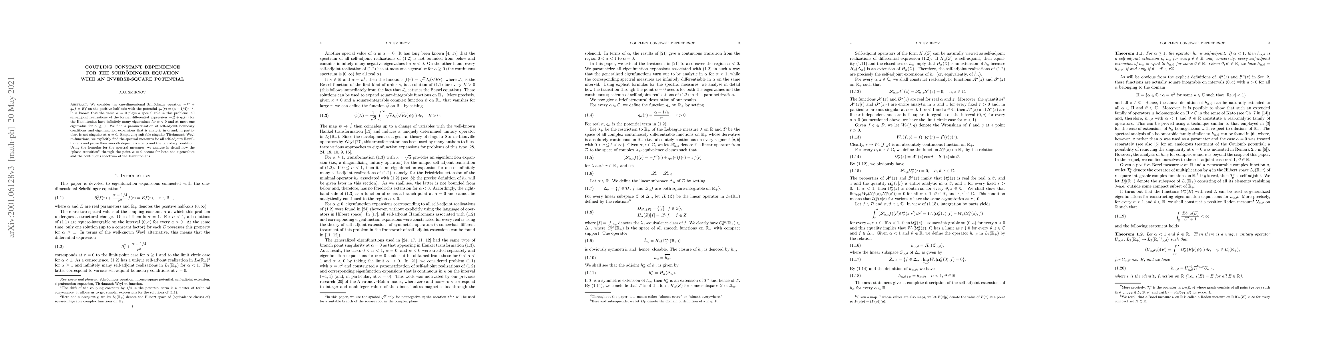 We consider the one-dimensional Schr\"odinger equation $-f''+q_\alpha f = Ef$ on the positive half-axis with the potential $q_\alpha(r)=(\alpha-1/4)r^{-2}$. It is known that the value $\alpha=0$ plays a special role in this problem: all self-adjoint realizations of the formal differential expression $-\partial^2_r + q_\alpha(r)$ for the Hamiltonian have infinitely many eigenvalues for $\alpha<0$ and at most one eigenvalue for $\alpha\geq 0$. We find a parametrization of self-adjoint boundary conditions and eigenfunction expansions that is analytic in $\alpha$ and, in particular, is not singular at $\alpha = 0$. Employing suitable singular Titchmarsh--Weyl $m$-functions, we explicitly find the spectral measures for all self-adjoint Hamiltonians and prove their smooth dependence on $\alpha$ and the boundary condition. Using the formulas for the spectral measures, we analyse in detail how the "phase transition" through the point $\alpha=0$ occurs for both the eigenvalues and the continuous spectrum of the Hamiltonians.