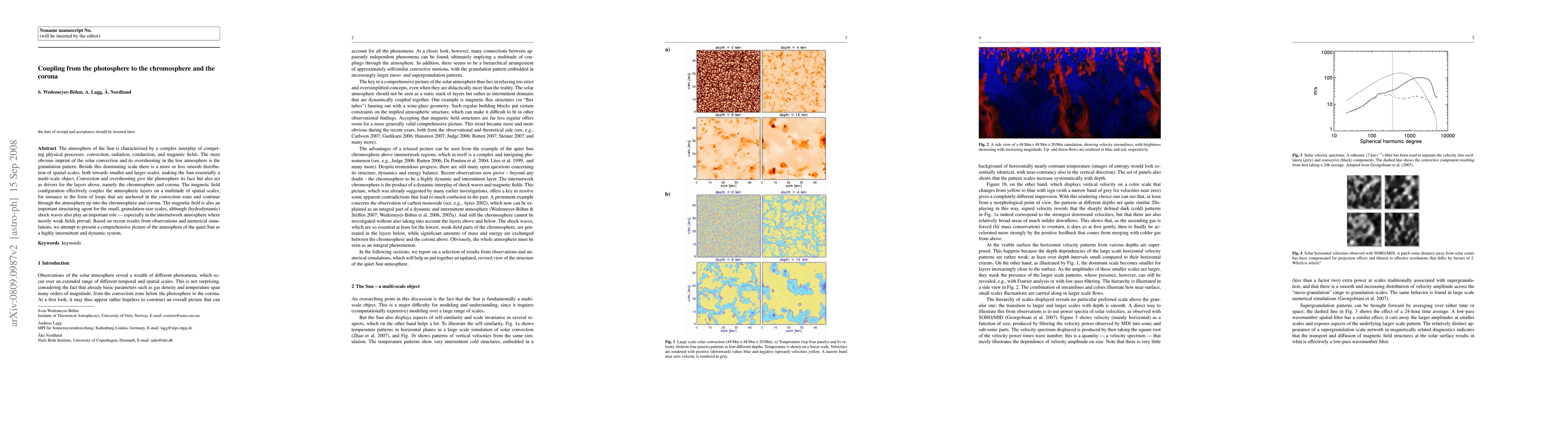 This paper explores the complex interactions between the Sun's photosphere, chromosphere, and corona, emphasizing the role of magnetic fields in coupling these layers and the influence of convection, radiation, and shock waves on the solar atmosphere. Recent observations and simulations reveal a highly dynamic, multi-scale system.