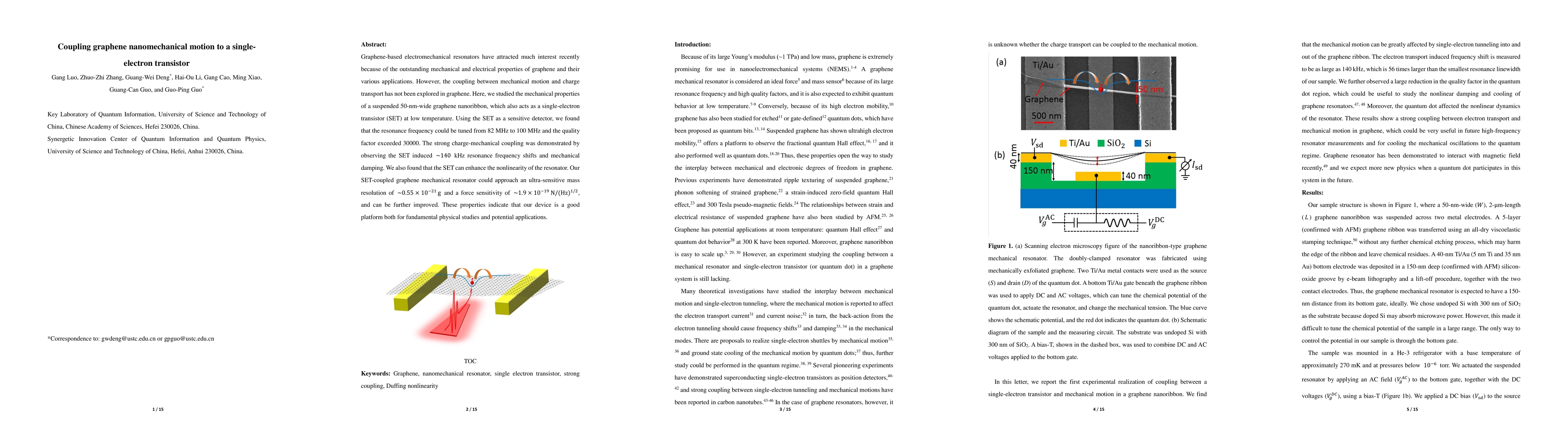Researchers created a graphene-based device that couples mechanical motion to a single-electron transistor, achieving ultra-sensitive mass resolution and force sensitivity.