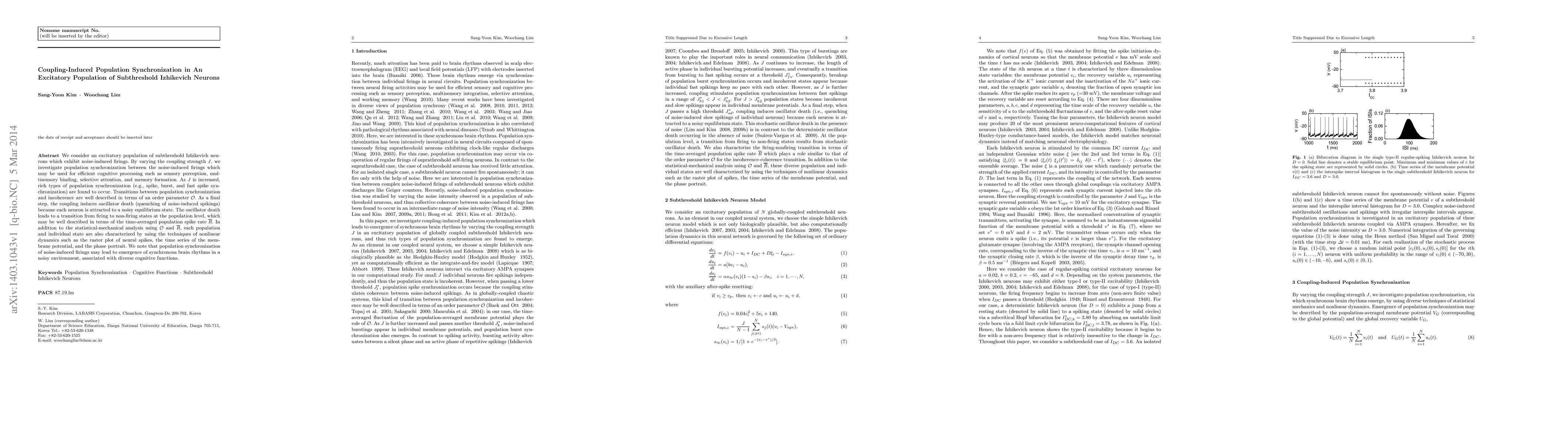 The research identifies diverse population synchronization states and their transitions in subthreshold Izhikevich neurons, providing insights into cognitive processing in noisy environments.