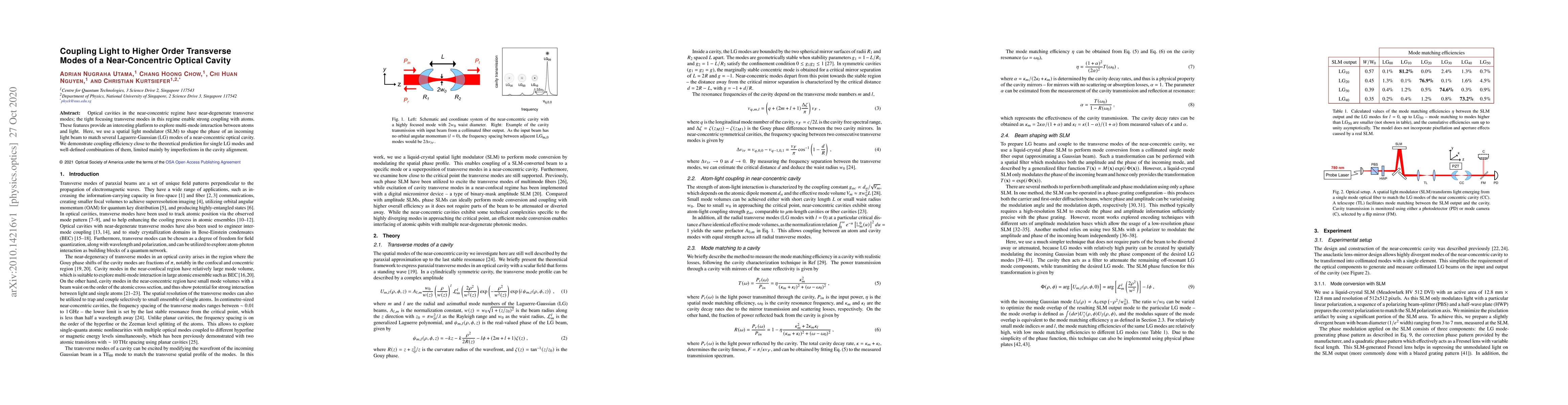 Optical cavities in the near-concentric regime have near-degenerate transverse modes; the tight focusing transverse modes in this regime enable strong coupling with atoms. These features provide an interesting platform to explore multi-mode interaction between atoms and light. Here, we use a spatial light modulator (SLM) to shape the phase of an incoming light beam to match several Laguerre-Gaussian (LG) modes of a near-concentric optical cavity. We demonstrate coupling efficiency close to the theoretical prediction for single LG modes and well-defined combinations of them, limited mainly by imperfections in the cavity alignment.